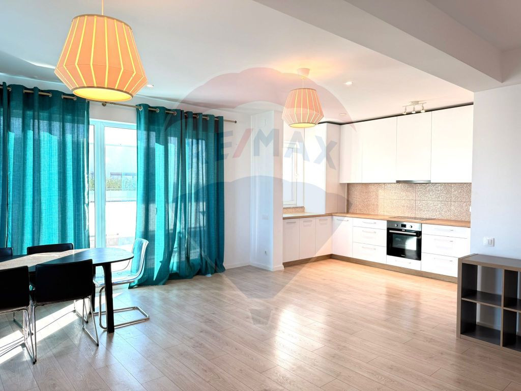 Apartament de închiriat – 3 camere ,2 terase , 1 loc de parcare– New Point Pipera, Voluntari Descoperă un apartament generos și luminos, situat la etajul 9 din 9 al ansamblului rezidențial New Point Pipera din Voluntari, cu o vedere panoramică superbă asupra zonei de nord a Capitalei. Cu o suprafață utilă bine compartimentată, locuința dispune de 3 camere, 2 băi, 2 terase mari ideale pentru relaxare, și se închiriază mobilată și utilată modern. În preț este inclus și 1 loc de parcare privat. Ansamblul New Point este un complex rezidențial nou, cunoscut pentru standardele ridicate de construcție, finisajele de calitate și spațiile verzi bine întreținute. Oferă intimitate, siguranță și confort urban într-o zonă în plină dezvoltare. Zona Pipera – Voluntari este una dintre cele mai dinamice zone rezidențiale din nordul Bucureștiului, cu acces facil la: - Transport public: stații STB (linia 445) la câteva minute de mers pe jos, legături rapide către Pipera, Aurel Vlaicu și centrul orașului. - Restaurante și cafenele: numeroase opțiuni în apropiere (Pipera Plaza, Promenada Mall). - Clinici și centre medicale: Regina Maria, Medicover, Sanador – toate la câteva minute distanță. Retail și shopping: în apropiere se află Pipera Plaza, Mega Image, Lidl, iar Promenada Mall și Băneasa Shopping City sunt la doar 10-15 minute de condus. Ideal pentru un cuplu sau o familie care caută confort, spațiu și o poziție privilegiată într-o zonă urbană modernă și bine conectată.