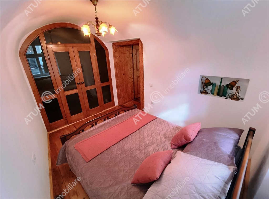 Descopera farmecul Sibiului direct din inima orasului! ATUM Imobiliare va propune spre inchiriere un apartament unicat, compus din 2 camere, situat langa Piata Mare din Sibiu. Apartamentul este situat la parterul unei case solide, fara igrasie, spatiul util de 44 mp este foarte luminos, primitor si ideal pentru cei care apreciaza atmosfera boema a centrului, cu acces la pas spre cele mai frumoase stradute, restaurante, cafenele, terase, magazine, parcuri si locuri de joaca publice, scoli, facultati, obiective turistice, statii de autobuz/taxi etc. Proprietatea prezinta o atmosfera burgheza fiind renovata in totalitate, printre dotari si imbunatatiri amintim de: instalatii electrice si sanitare noi, pereti refacuti in totalitate de la caramida (tencuiala, tinci si vopsea lavabila), usi din lemn la interior, geamuri termopan cu tamplarie din lemn prevazute cu obloane exterioare, parchet reconditionat din lemn masiv, gresie, faianta, centrala termica proprie pe curent, boiler, calorifere, mobilier de calitate in toate incaperile si electrocasnice noi (frigider, masina de spalat rufe, uscator rufe, cuptor cu microunde, masina de spalat vase, plita pe inductie, cuptor si hota electrice). Aceasta proprietate este situata la doar cativa pasi de Piata Mare a orasului, imbina eleganta clasica a cladirilor vechi cu confortul modern, fiind renovata in totalitate, cu materiale de calitate si finisaje atent alese. Pretul de inchiriere este de 499 euro/luna garantie. ID intern: 3015.
