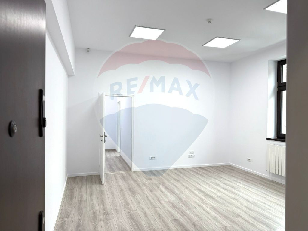 Spațiul este compartimentat eficient în 3 camere, beneficiază de baie și bucătărie, precum și de acces direct către o terasă frumos amenajată, un element rar în zona centrală a Bucureștiului. În plus, chiriașii au acces la o sală de meeting spațioasă, perfectă pentru întâlniri cu clienți sau ședințe de echipă.