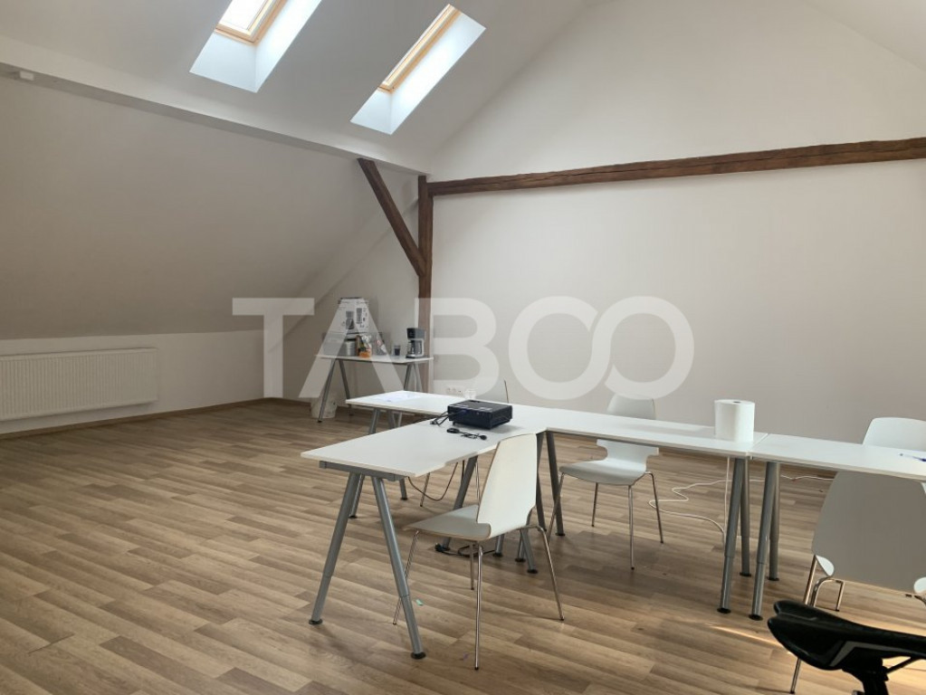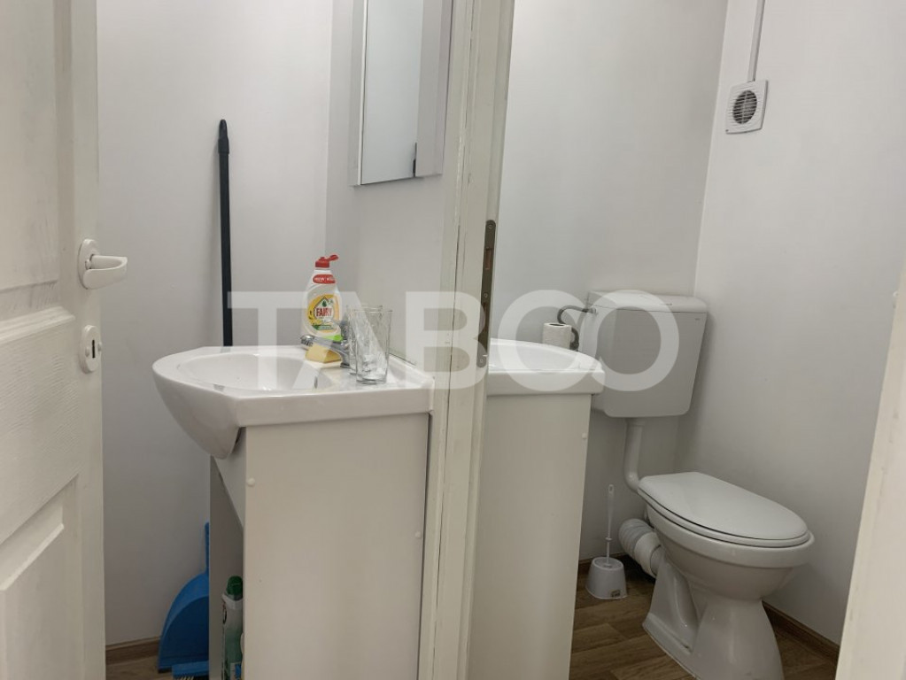 Taboo Imobiliare va propune spre inchiriere acest spatiu comercial compartimentat in doua birouri open space cu baie in fiecare incapere, pozitionat intr-o zona centrala a orasului Sibiu. Spatiul este situat intr-o zona ideala pentru sediul unei companii "de succes", spatiu de birouri, firme de IT, reprezentanta, call center, clinica medicala etc. Imobilul dispune de spatii utile extrem de generoase cu o compartimentare foarte bine gandita, a fost renovat recent si beneficiaza de toate imbunatatirile si dotarile necesare desfasurarii activitatilor de birou, dispune de incalzire cu centrala pe gaz si calorifere, aer conditionat. Viitorul proprietar poate opta in functie de viitoarea destinatie a cladirii, pentru o recompartimentare a spatiului util actual. Avantajele spatiului sunt: vad pietonal, vitrina stradala, suprafata generoasa si faptul ca nu necesita investitii. Pret: 1.180€ Cod ofertă / ID: P16569 Sună-ne acum la 0369.822.820 și află detalii despre această proprietate de inchiriat din Sibiu, dar și despre alte proprietăți potrivite pentru tine. Informatii speciale: 1. Descarcă aplicația pe mobilul tau "TABOO Imobiliare" din Apple Store, Google Play sau Huawei AppGallery pentru a afla instantaneu noile proprietăți care intră pe piață. 2. Dacă ai o proprietate pe care vrei să o vinzi sau să o închiriezi, suntem aici pentru tine! Contactează-ne pentru o evaluare gratuită fără obligații și vei descoperi avantajele de a lucra cu o echipă dedicată și experimentată. 3. Dacă vrei sa incepi o cariera de agent imobiliar, suna la 0369.822.820 si programeaza o intalnire pentru a afla toate beneficiile si avantajele. Intră pe TABOO.ro și descoperă cele mai recente oferte, actualizate zilnic. Anunt actualizat in 5 decembrie 2025. Id intern: P16569