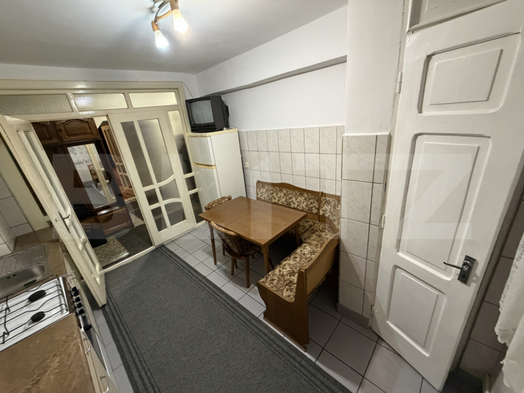 Blitz oferă spre închiriere apartament cu 3 camere, decomandat, situat în zona Cetate, o zonă apreciată pentru accesul facil către școli, magazine, mijloace de transport și puncte de interes din oraș. Apartamentul este compartimentat eficient și oferă un living spațios, două dormitoare, bucătărie separată, două băi și balcon închis. Locuința este complet mobilată și utilată, fiind pregătită pentru mutare imediată. Dispune de centrală termică proprie și calorifere, asigurând confort termic pe tot parcursul anului. Interiorul este bine întreținut, curat și funcțional, oferind spațiu generos de depozitare și o compartimentare ideală pentru o familie, un cuplu care își dorește birou separat sau persoane care caută mai mult spațiu și intimitate. Apartamentul reprezintă o opțiune practică și echilibrată pentru cei care își doresc o locuință spațioasă într-o zonă bună a orașului, la un preț accesibil. Disponibil imediat. Cod ofertă / ID BLITZ: P164097 Id intern: P164097