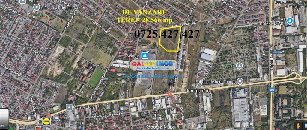 Oferta Exclusiva. De vanzare teren in Orasul Pantelimon, Jud. Ilfov. Deschidere la Str. Campului -151 ml si aprox 200 ml la o viitoare strada, pentru dezvoltare rezidentiala sau Comerciala. Pret: 250 euro/mp, Vecinatati: Selgros; Rezidential Pantelimon; Ivonco Residential . Suprafata teren: 28.700 mp. Mijloace de transport: - Autobuze 406, 407, 451, 452, 457. - Metrou Pantelimon M1 ( 2,7 km). Comision 0 de la Cumparator Detalii: [email protected], zero sapte doi cinci patru doi sapte patru doi sapte Informatii eficienta energetica: