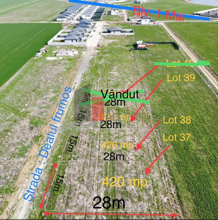 De vânzare 3 loturi de teren in comuna Berceni-Vidra (S-a inceput construirea unor noi case pe strada dar pozele sunt puțin mai vechi de accea nu se văd) Zona liniștita cu construcții de case noi Grădinița , scoala , magazine , brutărie ( chiar pe strada ) ,in apropiere Accesul se poate face ușor din bulevardul principal , ca.300 m pana la lot - Gazele sunt trase la fiecare lot - Curentul este tras la fiecare lot - Fibra optica RDS este trasa la fiecare lot Stația de metrou Tudor Arghezi se afla la 3.9 km distanță Drumuri de acces 9 m lățime(cedat primăriei) Fiecare lot are 420mp : - 15 m deschidere - 28 m lungime Se pot vinde împreuna cât și separat Se poate începe construcția casei imediat P+1+M Toate actele la zi.