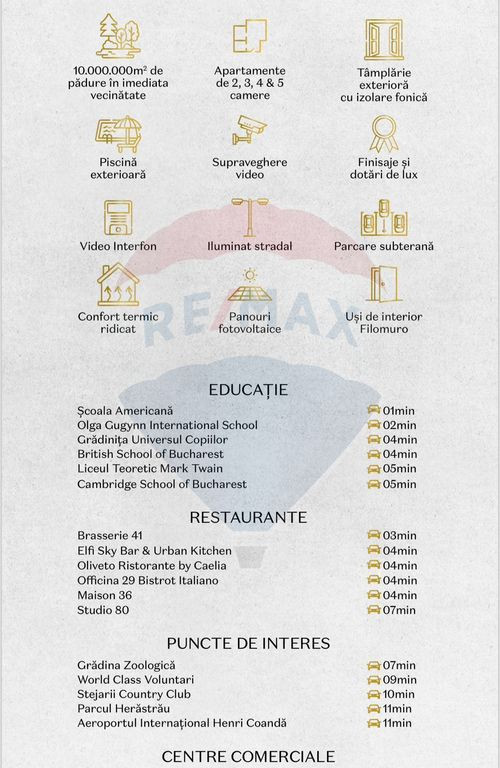 Un nou complex exclusivist cu o arhitectura desavarsita se dezvolta in Pipera. Zona este recunoscută pentru diversitatea sa, găzduind un centru de afaceri dinamic, facilități comerciale de prim rang, școli internaționale de renume și o gamă variată de restaurante, creând astfel un mediu urban activ și plin de viață. Localizare și Accesibilitate Complexul ERA se află într-o zonă liniștită, vis-a-vis de pădurea Băneasa, plămânul verde al Bucureștiului, cu o suprafață de circa 10.000.000 m². Pipera beneficiază de o conectivitate excelentă la rețeaua de transport public, incluzând metrou și autobuze, facilitând călătoriile rapide și convenabile atât în interiorul orașului, cât și în afara acestuia. În imediata apropiere se găsesc grădinițe, bănci, clinici și mall-uri, oferind locuitorilor acces facil la toate zonele de interes. Design și Arhitectură Clădirea de apartamente ERA se va remarca printr-o arhitectură elegantă, cu forme circulare și balustrade de sticlă continue, culori naturale și o piscină Infinity spectaculoasă. Construcția se va realiza pe o fundație solidă din beton armat, cu pereți exteriori și despărțitori din cărămidă, asigurând durabilitate și izolație superioară. Apartamente și Facilități Cele 40 de apartamente ale complexului vor oferi spații interioare generoase, gradini sau terase spațioase, pentru a răspunde nevoilor diverse ale viitorilor proprietari. Disponibilitatea apartamentelor variază de la 2 la 5 camere, asigurând opțiuni variate pentru fiecare familie. Imobilul va fi echipat cu o centrală termică modernă, iar confortul termic va fi garantat prin sistemul de încălzire în pardoseală. Energia electrică pentru zonele comune va fi furnizată de un sistem fotovoltaic instalat pe clădire, contribuind la eficiența energetică și reducerea impactului asupra mediului. Finisaje și Materiale de Calitate Complexul ERA promite finisaje de cea mai înaltă calitate. Ușile Filomuro se vor integra perfect în designul modern, oferind un spațiu coeziv și luminos. Finisajele interioare vor include parchet triplustratificat și ceramică italiană, asigurând un aspect natural, estetică deosebită și rezistență la uzură. Tâmplăria exterioară din aluminiu va completa ansamblul, oferind durabilitate, izolație termică și fonică superioară, precum și un aspect modern. Toate materialele utilizate, atât pentru finisaje interioare cât și exterioare, vor proveni de la branduri de renume precum Schüco, Viessmann, Daikin, Schneider Electric, Porotherm, Noving Air, Emil Ceramica, Tece, Holcim, VLadilA, Reynaers Aluminium, Puran, Jacuzzi, Schindler, Dierre, ceramica Rondine, Haro, Ceramica Althea, Villeroy & Boch și Garofoli. Termen de Finalizare și Modalități de Achiziție Termenul de finalizare al complexului ERA este decembrie 2025. Oferim multiple metode de achiziție, adaptate nevoilor și preferințelor fiecărui client, incluzând discounturi personalizate in functie de modalitatea de plata aleasa.