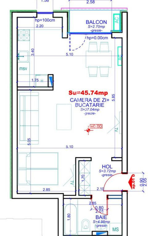 Compartimentare eficienta – zona de zi spatioasa, bucatarie generoasa, baie complet utilata si terasa