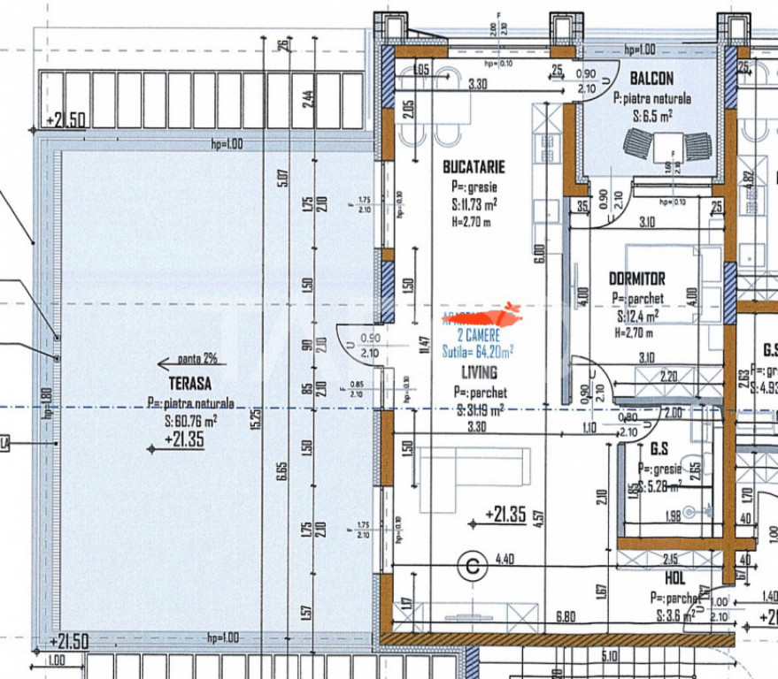 Suprafața utilă 64 m²
