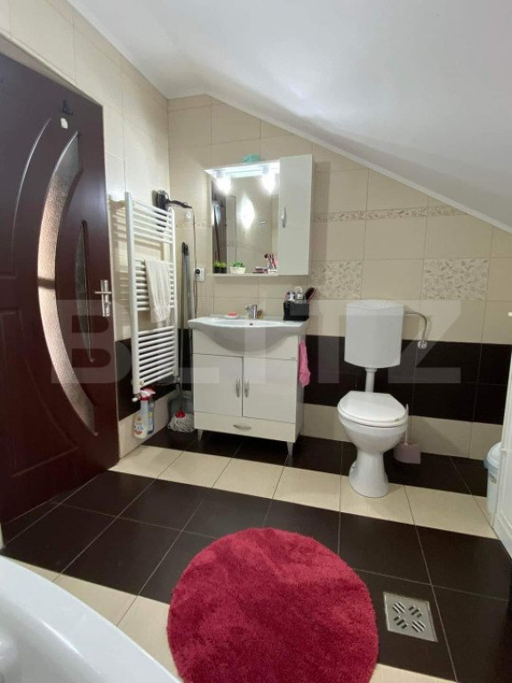 Blitz vinde casa individuala construita pe structura de lemn , finalizată în 2016, cu finisaje interioare și exterioara de calitate. Suprafață utila este de 125 mp , iar imobilul se afla pe un teren generos de 10 arii , intr-o zona liniștită . Compartimentare : *Parter: Hol de intrare Dormitor Baie Camera tehnica Bucatarie deschisa cu living spațios (open space) *Mansarda : Hol 2 dormitoare Camera suplimentara (ideală pt birou sau camera copiilor) Baie Detalii suplimentare: Scari placate cu lemn de mahon Terasa exterioara cu mini bucatarie Utilitati si dotari: Gaz, apa, curent electric, fosa septica Izolatie termica eficienta Centrala termică pe gaz Se vinde partial mobilata. Aceasta proprietate este perfecta pentru o familie care caută o casa confortabila , bine întreținută și situată intr-o zona verde și liniștită . Contactati-ne pentru mai multe detalii sau pentru programarea unei vizionari. Cod ofertă / ID BLITZ: P136714 Id intern: P136714