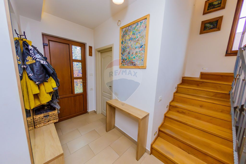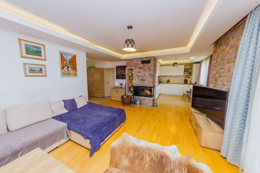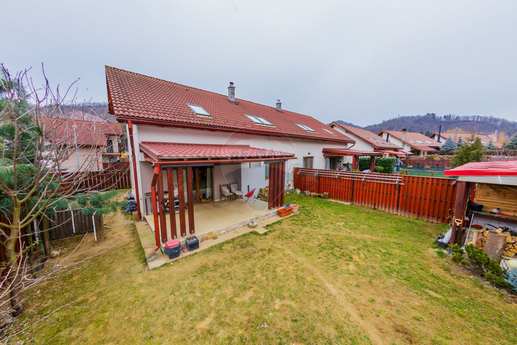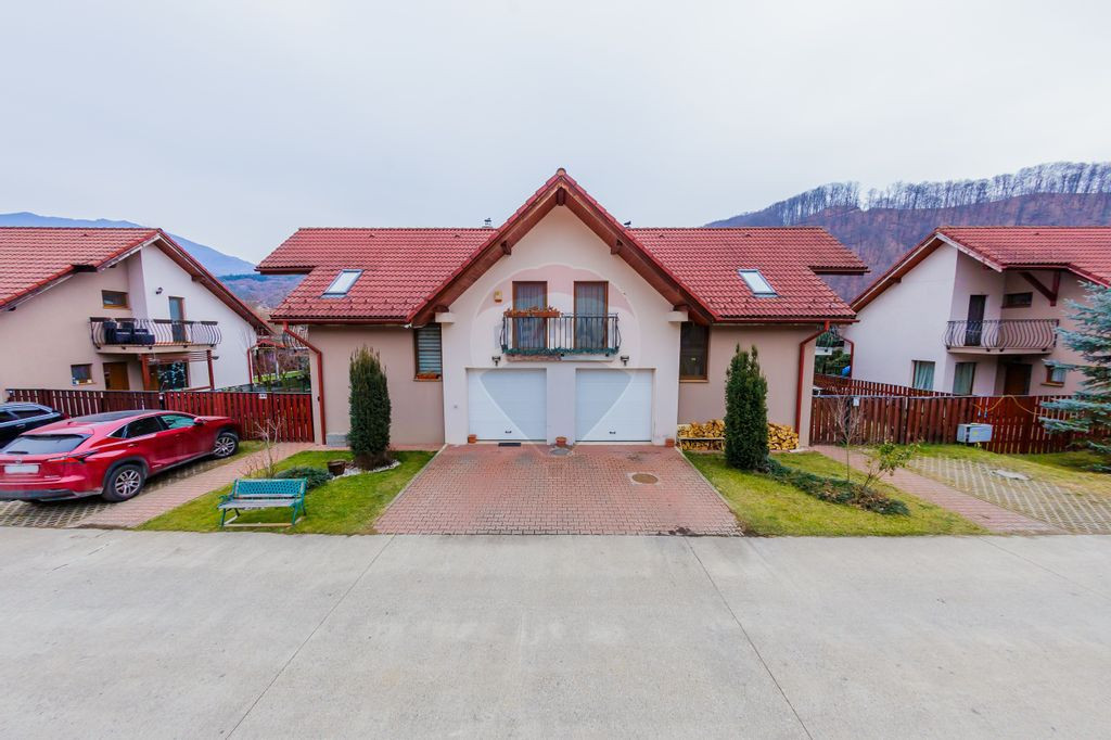 SE VINDE PARTE DIN DUPLEX!! Această casă modernă, situată într-un cartier cu acces securizat, oferă liniștea și confortul ideal pentru o familie. Amplasată la doar 10 minute de oraș, proprietatea îmbină perfect proximitatea față de zonele urbane cu atmosfera relaxantă a unei zone rezidențiale liniștite. Locuința dispune de o compartimentare eficientă, menită să optimizeze fiecare spațiu: PARTER: un living spațios, integrat armonios cu bucătăria, creând un spațiu primitor și luminos, ideal pentru momentele petrecute alături de familie. De asemenea, găsim un hol generos la intrare, o baie modernă și un garaj încăpător, oferind atât funcționalitate, cât și confort. ETAJ: (3)trei dormitoare bine proporționate, perfecte pentru odihnă și intimitate, alături de o baie elegantă. POD: un spațiu ideal pentru depozitare, menit să păstreze organizarea casei fără a compromite designul interior. Locatia dispunde de 2 locuride parcare şi ****Casa este dotată cu centrală termică proprie, asigurând un sistem de încălzire eficient și economic. În plus, proprietatea are un șemineu ce distribuie căldura uniform în toate camerele de la etaj printr-un sistem ingenios de tubulatură. Este racordată la toate utilitățile (apă, canalizare, gaz și electricitate), oferind astfel un stil de viață modern și lipsit de griji. Cu un design modern, o structură funcțională și un amplasament ideal, această casă este alegerea perfectă pentru cei care își doresc siguranță, confort și acces rapid către oraș. Pentru mai multe detalii sau vizionări, apelați 0741392472 Alina Bohatel