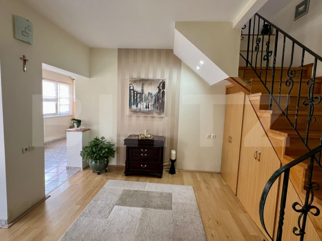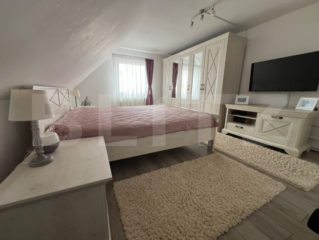 Blitz oferă spre vânzare o casă primitoare, situată într-o zonă liniștită și căutată din Târgu Mureș. Proprietatea este ideală pentru o familie care își dorește confort, intimitate și siguranță. Detalii proprietate: Suprafață utilă: cca. 135 mp Suprafață teren: 400 mp Regim de înălțime: Parter + Etaj + Pod (aprox. 10 mp pentru depozitare) Compartimentare: Parter: Living luminos, dormitor (poate fi utilizat și ca birou), bucătărie completă, cămară, baie, hol și casa scării. Etaj: 2 dormitoare dotate cu aer condiționat pentru confort sporit, baie și casa scării. Anexe și dotări exterioare: 2 garaje spațioase + un mic atelier ideal pentru hobby-uri sau depozitare. Sistem de supraveghere video și alarmă. Poartă/Garaj cu automatizare. Alte beneficii: Casa se vinde complet mobilată și utilată, fiind gata pentru mutare imediată. Curte individuală, oferind intimitate deplină. Cod ofertă / ID BLITZ: P168515 Id intern: P168515