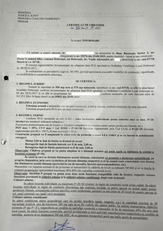 Proprietate cu potențial în Dobroești - teren 575 mp + casă din cărămidă Proprietatea are un teren de 575 mp și o casă din cărămidă (amprentă 90 mp), care necesită renovare completa sau reconstrucție. Dispune de toate utilitățile in casă racordate : apă, canalizare, gaze și curent electric. Oferă potențial excelent pentru (re)construcția unei locuințe moderne sau pentru proiect rezidențial de mici dimensiuni. Acces facil la mijloace de transport, școli și magazine. Locația oferă echilibrul perfect între liniștea de la hotarele capitalei și accesul rapid către oraș. Pentru mai multe detalii sau programarea unei vizionări, contactează-ne! Id intern: VD19456