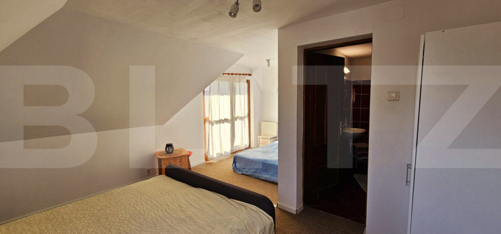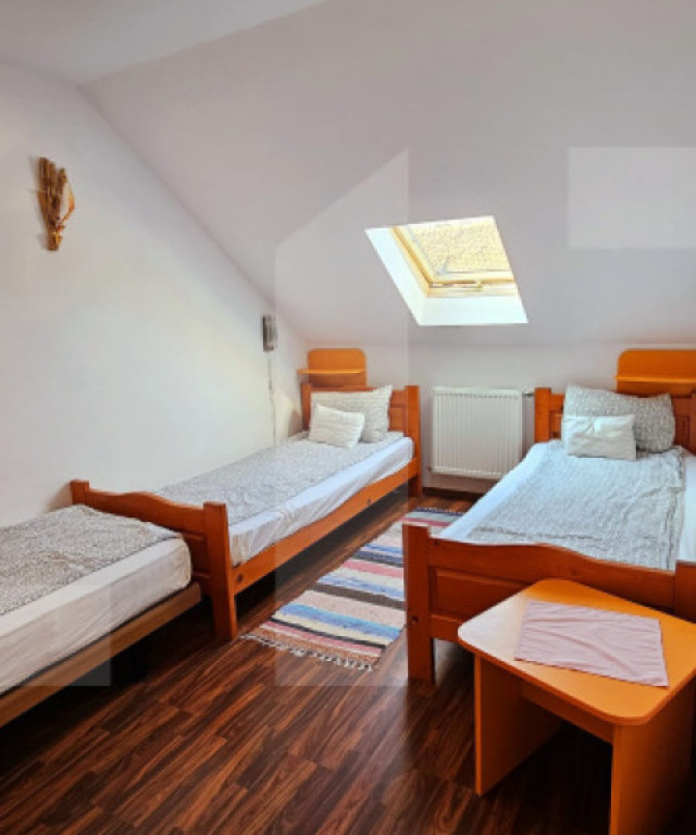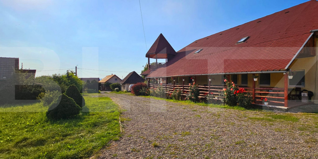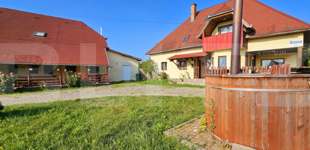 O oportunitate unică de investiție în turismul din inima Transilvaniei! Pensiunea Teglas este situată în localitatea Bicfalău, într-un cadru natural deosebit, liniștit, la marginea unei păduri de brazi, la doar 17 km de Sfântu Gheorghe și 32 km de Brașov. Caracteristici principale: • Suprafață totală teren: 1663 mp (curți construcții). • Suprafață totală utilă clădiri: aproximativ 900 mp. • Compusă din două clădiri distincte: 1. Clădire modernă (construită în 2007) – 593 mp: Restaurant cu 60 de locuri. Bucătărie spațioasă, complet utilată. 9 camere cu băi proprii. Terasă exterioară cu 60 de locuri. 2. Clădire rustică (construită în 2005) – 292 mp: 1 bucătărie completă. 1 cameră de zi. 5 camere duble și 1 apartament, toate cu băi proprii. • Capacitate totală cazare: 32 persoane + 8 locuri suplimentare (16 camere). • În curte se află și o casă veche din anul 1840, ce poate fi renovată cu ușurință pentru a extinde oferta de cazare sau pentru a crea un spațiu tematic autentic. Facilități și dotări: • Saună. • Jacuzzi interior și exterior. • Curent electric trifazat. • Apă potabilă din 2 puțuri proprii, cu sistem de filtrare. • Canalizare proprie. • Încălzire prin centrală termică pe lemne. • Parcare privată generoasă, în incintă. Alte beneficii: • Cadru natural superb, ideal pentru relaxare. • Potențial ridicat de dezvoltare – posibilitate extindere sau amenajare spații tematice. • Locație accesibilă turiștilor români și străini datorită proximității față de Brașov. Transformă această proprietate într-un business de familie sau într-o afacere turistică prosperă. Pensiunea Teglas nu este doar o investiție – este începutul unei povești. ???? Pentru mai multe detalii și vizionări, contactează-ne acum! Cod ofertă / ID BLITZ: P149509 Id intern: P149509