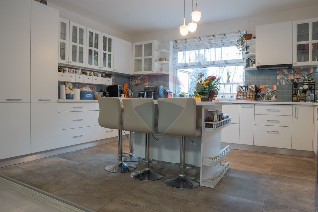 PROPRIETATE PREMIUM – REȘEDINȚĂ ELEGANTĂ CU PISCINĂ ÎN SAT ROȘU, CHIAJNA Într-un cadru rezidențial select și extrem de liniștit, în Sat Roșu – Comuna Chiajna, pe strada Gura Aleului nr. 25, se remarcă o proprietate de excepție, creată pentru cei care apreciază spațiul generos, confortul autentic și intimitatea absolută. Reședința este amplasată pe un teren impresionant de 950 mp, amenajat armonios, cu zone verzi mature și piscină exterioară privată, un adevărat refugiu de relaxare și socializare. Casa are o amprentă la sol de 182 mp și o suprafață desfășurată de aproximativ 280 mp, din care 230 mp utili, oferind o compartimentare inteligentă și extrem de funcțională. Construită solid în 2006, imobilul are un beci ca si camera tehnica , parter și etaj și pod si dispune de: 6 camere spațioase, perfect adaptate vieții de familie, 2 birouri ideale pentru activități profesionale sau studiu, 3 băi complet echipate, cu finisaje moderne, dressing generos și multiple spații de depozitare. Zona de zi impresionează printr-un living amplu open-space cu bucătăria, scăldat în lumină naturală, conceput ca punct central al casei. Terasa închisă și terasa deschisă extind elegant spațiul de locuire, oferind priveliști relaxante către curtea privată. Proprietatea este completată de 3 balcoane, fiecare cu deschidere către zone verzi și liniște deplină. Casa se vinde complet mobilată și utilată, într-un stil modern, atent ales, beneficiind de toate utilitățile și fiind pregătită pentru mutare imediată, fără nicio investiție suplimentară. Localizarea este un alt atu major, cu acces rapid către instituții educaționale, sportive și zone de interes: Liceul Tehnologic Doamna Chiajna Grădinița LILO SMART Brutăria de la Drum Școala de Aplicație pentru Ofițeri Mihai Viteazu SPCLEP Chiajna Complex Sportiv 2000 Trattoria Această proprietate reprezintă echilibrul perfect între eleganță, funcționalitate și intimitate, fiind alegerea ideală pentru cei care își doresc o locuință premium într-o comunitate selectă, aproape de oraș, dar departe de zgomot.