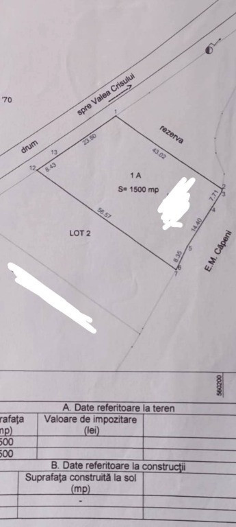 Terenul are 1500  metri patrati si frontul are 32 metri.