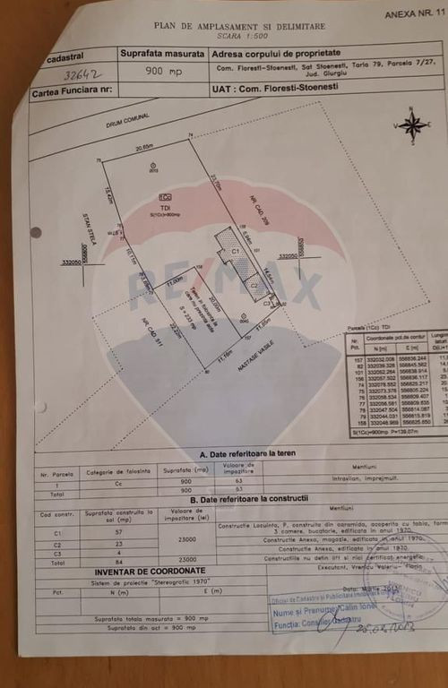 Teren de până la 1133 mp în inima comunei Florești-Stoenești – acces facil, utilități și oportunități multiple Vă oferim spre vânzare un teren cu suprafață extinsă de până la 1133 mp, situat în centrul comunei Florești-Stoenești, într-o zonă liniștită, dar cu acces rapid la toate facilitățile esențiale. Caracteristici principale: Suprafață actuală: 900 mp, cu posibilitatea extinderii la 1133 mp, în urma unei decizii definitive a tribunalului – se așteaptă doar finalizarea formalităților administrative. Deschidere dublă de 20 m, asigurând acces facil și vizibilitate crescută. Drum asfaltat până la teren, eliminând grija drumurilor neamenajate. Toate utilitățile disponibile: apă, canalizare, gaz și electricitate. Vecinătate liniștită, cu vecini prietenoși, într-o zonă sigură și plăcută. Potențial de dezvoltare: Casă existentă pe teren, ce poate fi renovată sau demolată, în funcție de planurile dumneavoastră. Aceasta oferă flexibilitate și multiple posibilități de valorificare a proprietății. Datorită poziționării excelente, aproape de primărie, biserică și magazine, acest teren este ideal pentru construirea unei locuințe sau pentru o investiție profitabilă. Pentru mai multe detalii și vizionare, nu ezitați să mă contactați!