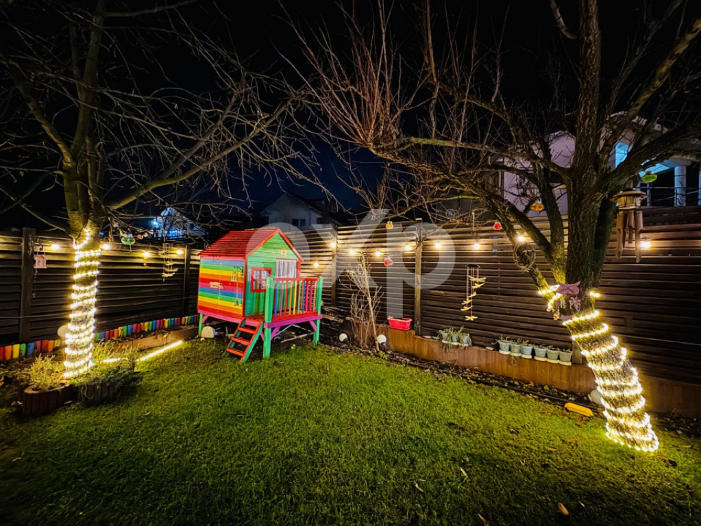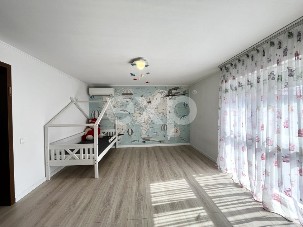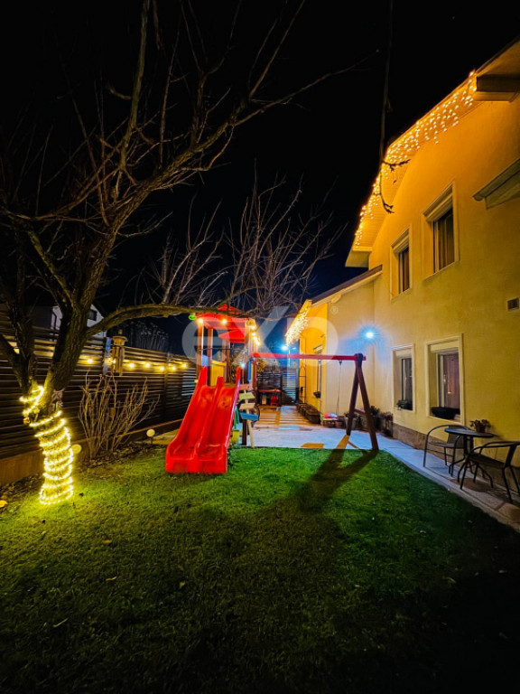 SNG Real Estate va ofera spre vanzare o vila individuala cu 7 camere, mobilata si utilata, intr-un complex residential inchis, cu 11 locuinte, intr-o zona premium, in apropiere de lac - Strada Laguna Albastra, Corbeanca. Casa beneficiaza de proximitatea lacului si a padurii, oferind un stil de viata echilibrat, unde natura si confortul modern se imbina armonios. Avand o suprafata construita de 280 mp., dintre care 223 mp. utili, imobilul este amplasat pe un teren de 520 mp. Compartimentare: Parter: * Living generos, luminos, cu vedere catre gradina * Bucatarie complet echipata (electrocasnice Gorenje) * 3 camere versatile (birou / dormitor / terasa) * Una dintre camere dispune de pod pe toata suprafata * 2 grupuri sanitare * Spatiu de depozitare sub scara * Centrala Hermann cu boiler de 200L Etaj: * 3 dormitoare spațioase * Fiecare dormitor dispune de baie proprie * Dormitorul matrimonial are balcon cu vedere catre lac. Toate camerele sunt dotate cu aer conditionat de debit mare, asigurand climatizare optima in orice sezon. Doua locuri de parcare. Exterior – gradina matura amenajata. * Gradina matura, cu vegetatie stabilizata * Sistem de irigare prin aspersoare, controlabil de la distanta * Conifere decorative in gradina frontala * Pomi fructiferi pe rod in zona din spate * Complex de joaca pentru copii * Doua spatii de depozitare * Trotuare din granit pe toata circumferinta casei * Iluminat exterior ambiental * Soclu din ardezie naturala. Siguranta si dotari tehnice * Acces in complex controlat (poarta automata) * Sistem de supraveghere video interior–exterior * Contract activ cu firma de securitate * Casa anvelopata cu polistiren de 10 cm * Curent trifazic * Panou electric interior + exterior * Racordare la RAJA – apa si canalizare * Put propriu + fosa septica Localizare: * Apropiere de lac si padure * In proximitate: parc, scoala, punct sanitar, farmacii, Lidl, Mega Image, magazine si restaurante. Pentru mai multe detalii, ma puteti contacta oricand!!! Id intern: EXP1283