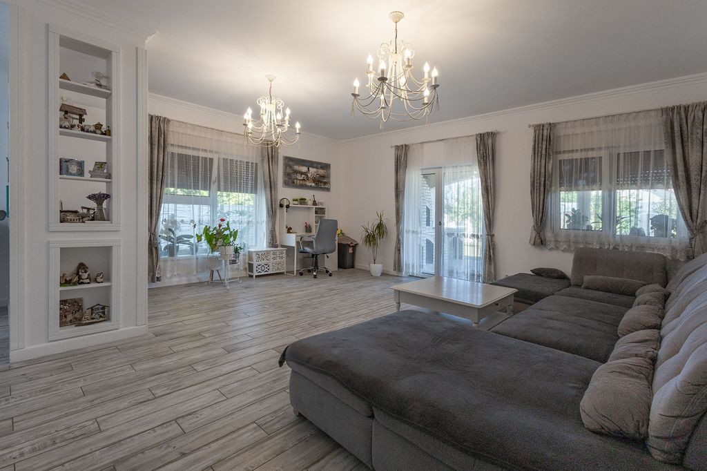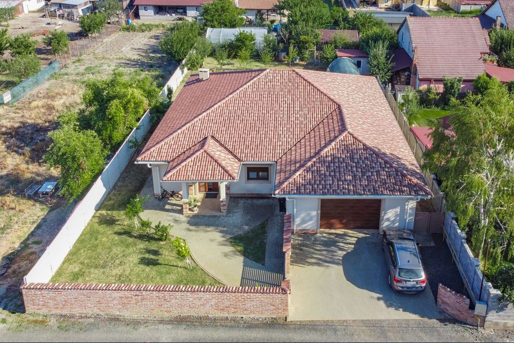 Pentru iubitorii de lux si liniste va propunem spre vanzare cu comision 0% o casa deosebita, cu o suprafata de 226 mp utili + garaj încălzit 40 mp si 1000mp teren, in localitatea SanMihaiu Roman, la doar 30 de minute de centrul orasului Timisoara. Constructia este integral din beton și BCA 30cm cu termoizolatie din polistiren EPS 100 si acoperis din tigla si dispune de gaz, curent trifazic, apă și fosa drenaj. Intre parter și pod exista placa de beton izolata. Proprietatea are regim de inaltime P+Pod ( posibilitate mansardare, înălțime maximă 3m ) și dispune de un garaj încălzit. Detalii interior : usa intrare PVC, gresie, centrala termica proprie cu încălzire în pardoseala, usi interioare MDF, tamplarie tripan cu protectie UV, supraveghere video si termostat in fiecare încăpere. Casa este luminoasă, spațioasă cu zona mare de living cu ieșire pe terasă, loc de luat masa, 3 dormitoare, 3 băi, bucătărie închisă, camera tehnica și dressing încăpător. Curtea dipsune de zona barbeque, cu grill si cuptor, sera pentru legume, fantana forata de 12m cu hidrofor si aspersoare pentru gazon, canal sapat la 2m pentru apa pluviala si parcare betonata si pavaj sub care se afla fosa. Casa se vinde cu 0% COMISION pentru cumparator, complet mobilata si utilata, conform pozelor. Pentru detalii si vizionari, nu ezitati sa ne contactati !