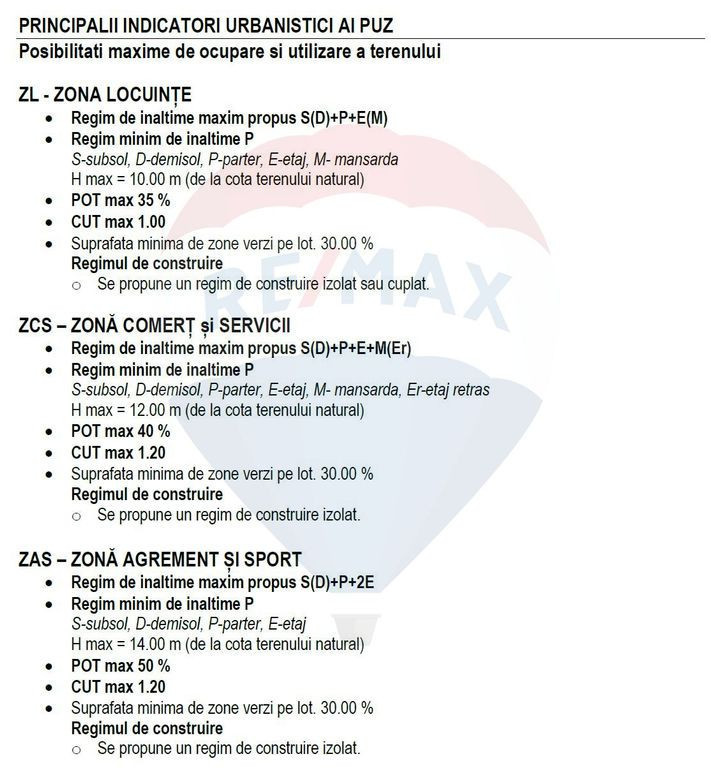 Teren de vanzare cu PUZ in curs de obtinere - Sânpetru - str. Narciselor - DE589/5, nr. F.N., COMISION 0% Avem plăcerea de a vă oferi spre vânzare un teren extravilan cu o suprafață generoasă de 24,348 mp, situat în localitatea Sânpetru, județul Brașov, pe str. Narciselor - DE589/5, la nr. F.N., cu acces din str. 13 Decembrie sau din str. Hărmanului, aparținând administrativ teritorial de comuna Sânpetru. Acest teren reprezintă o oportunitate excelentă pentru dezvoltări rezidențiale. Terenul este ușor accesibil din Brașov, la doar 10 minute cu mașina, și la 15 minute de centrul orașului Distanța până la Coressi Resort – 4,4 – 5,3 km Distanța până la centru Brașov – 7,2 – 8,9 km Distanța până la AFI MALL Brașov – 7,3 – 7,8 km Distanța până la ocolitoatea Brașov – 2,4 – 6,5 km Suprafața totală – 24348 m2 Forma: Dreptunghiulară, ideală pentru proiecte de dezvoltare Topografie: Plat, facilitând construcțiile și infrastructura Utilități: Apă, curent electric și gaz în apropiere. Documentație: PUZ în derulare, cu obținerea avizului de la Consiliul Județean (CJ) și a Hotărârii de Consiliu Local (HCL) estimate în termen de 6 luni. Flexibilitate în Achiziție: Terenul se achiziționează în întregime. Plan Urbanistic Zonal (PUZ): Proiectul propus prin PUZ prevede o zonă de locuințe, o zonă de comerț și servicii și o zonă de agrement și sport. Dezvoltări : Terenul este ideal pentru construirea de imobile rezidențiale sau alte facilități comerciale, inclusiv a unei zone de agrement și sport conform PUZ-ului propus. STATUS CURENT– TEREN EXTRAVILAN CU PUZ ÎN CURS DE APROBARE - TERMEN APROXIMATIV 6 LUNI ZL - ZONA LOCUINȚE Regim de inaltime maxim propus S(D)+P+E(M) Regim minim de inaltime P POT max 35 % CUT max 1.00 ZCS – ZONĂ COMERȚ și SERVICII Regim de inaltime maxim propus S(D)+P+E+M(Er) Regim minim de inaltime P POT max 40 % CUT max 1.20 ZAS – ZONĂ AGREMENT ȘI SPORT Regim de inaltime maxim propus S(D)+P+2E Regim minim de inaltime P POT max 50 % CUT max 1.20 Documentația de PUZ și planurile se pot pune la dispoziție în urma unei întâlniri! Pentru orice detalii vă stăm la dispoziție. Nume: Bogdan Preda Telefon: 0726-102-852 Email: [email protected] Vă așteptăm să descoperiți potențialul acestui teren in vederea investiției!