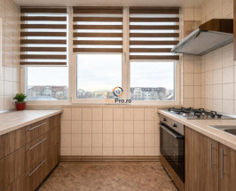 Apartamentul este dotat cu jaluzele exterioare albe, din aluminiu.