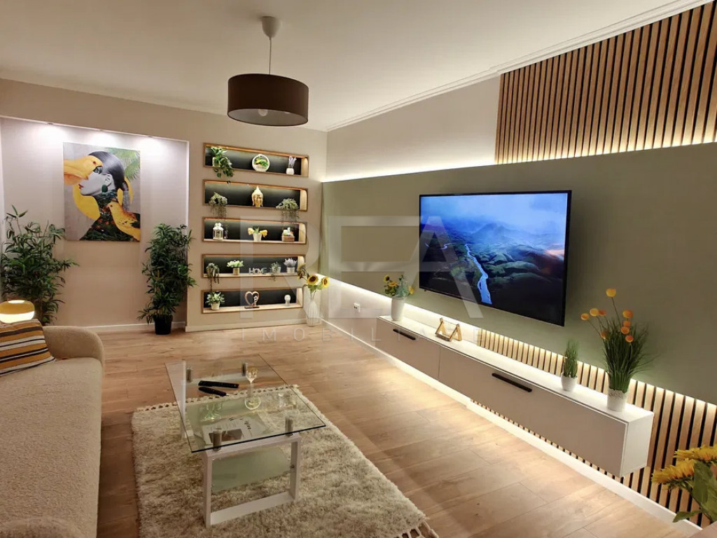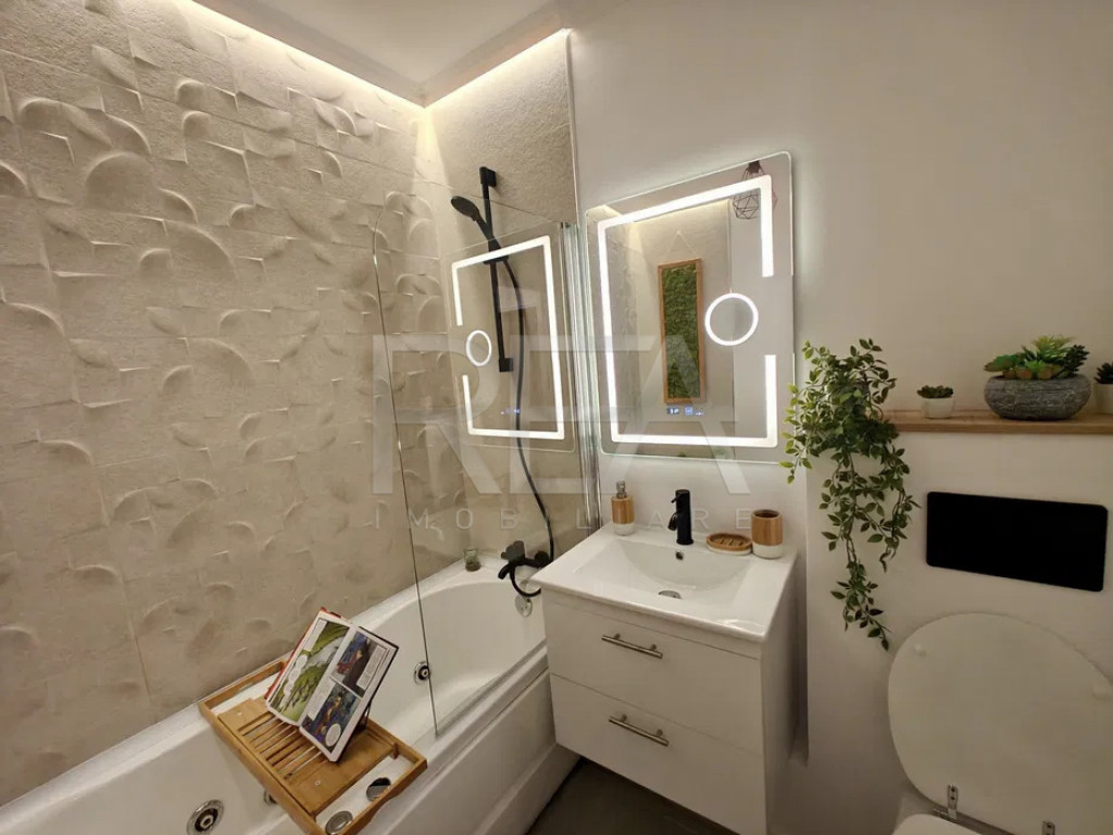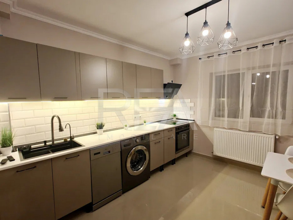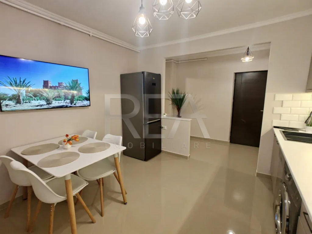 R.E.A. Imobiliare Apartament modern cu 2 camere complet renovat, design scandinav – la 2 minute de Parcul Tineretului Vă prezentăm spre vânzare un apartament cu 2 camere, decomandat, situat la etajul 10/10 al unui imobil P+10, dotat cu lift, finalizat în 1981. Proprietatea a fost complet renovată și amenajată cu atenție la detalii, sub semnătura Dual Art Design, într-un stil scandinav modern, cu finisaje și dotări de înaltă calitate. ???? Date tehnice: Suprafață totală: 65,56 m² Suprafață utilă: 54,64 m² + 3,68 m² adăugați prin închiderea balconului Confort: 1 Compartimentare: 1 dormitor, living cu bucătărie open-space, baie, balcon deschis (amenajat ca birou) Sistem de încălzire: centrală termică a imobilului Balconul a fost renovat și transformat într-un birou luminos, cu blat de lucru iluminat LED, fiind deschis către sufragerie — un detaliu care adaugă spațiu și funcționalitate zonei de zi. Dotări și finisaje: Estetic: -Design interior realizat de Dual Art Design – amenajare în stil scandinav, cu mobilier modern și accente de textură naturală; -Bucătărie spațioasă, patrata, ce poate fi amenajată ca al doilea living; -Iluminare LED ambientală în fiecare cameră. Utilități și echipamente: -Centrala termică nouă pe gaz (instalație îngropată); -2 aparate de aer condiționat; -Cada jacuzzi cu hidromasaj; -Mașină de spălat vase, mașină de spălat rufe; -Smart TV 4K de 127 cm + Smart TV 107 cm; -Frigider cu tehnologie inverter, cuptor electric, plită cu inducție, hotă din sticlă. Finisaje premium: -Riflăje decorative, piatră aparentă, gresie rectificată și parchet cu bizot; -Tâmplărie VEKA cu geam termopan; -Calorifere Ferolli. Mențiune specială: ➡️ Apartamentul nu a fost locuit după renovare – totul este nou, fără uzură, pregătit pentru prima utilizare! ???? Localizare: Imobilul este amplasat într-o zonă liniștită și verde, la doar 2 minute de mers pe jos de Parcul Tineretului, oferind un echilibru ideal între confort urban și relaxare în natură. Acces rapid la transportul în comun: -1 minut de mers pe jos până la stațiile STB 312, 381, 73, 97 Pentru detalii si vizionari, vă rugăm să ne contactați, specificand codul de identificare P9065 Id intern: P9065