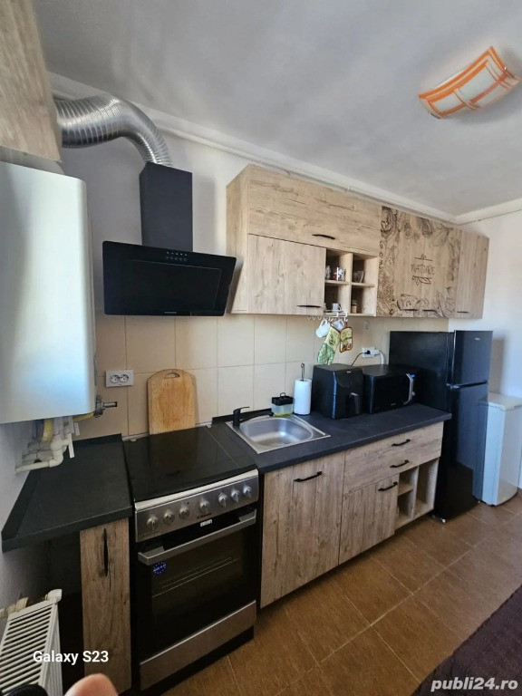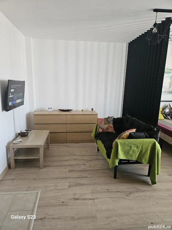 Garsonieră luminoasă tip studio de închiriat în Popești Leordeni, la 10 minute de metrou Berceni Dimitrie Leonida Oferim spre închiriere o garsonieră tip studio, complet renovată și modernizată, cu o suprafață de 35 mp. Este foarte luminoasă, cu bucătărie separată, baie complet utilată, balcon și un living împărțit în spațiu de dormit și zonă de entertainment. Garsoniera este dotată cu aer condiționat, frigider, mașină de spălat, cuptor cu microunde, air fryer, veselă și tacâmuri tot ce aveți nevoie. Mobilierul este nou-nouț, parchetul proaspăt schimbat, iar baia complet renovată. Se află într-o zonă foarte liniștită, cu blocuri mici și case, fără zgomot de trafic. Blocul are lift, interfon, bariere la intrare, camere de supraveghere și locuri de parcare libere. În apropiere se află supermarket Penny, stație de autobuz la ieșirea din complex, farmacii, easybox, școli, grădinițe, sală de sport, restaurante și pizzerii tot ce vă trebuie la îndemână. Garsoniera este disponibilă imediat și se poate viziona oricând. Preț: 400 de euro lună + o lună garanție (400 de euro). Ideală pentru un cuplu sau o persoană singură.