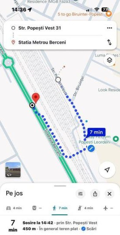 Garsonieră de închiriat în Popești-Leordeni La 7 minute de mers pe jos de metrou Berceni. In proximitate se afla Auchan, Carrefour Market, farmacii, scoli, gradinite, sala de fitness StayFit Gym. Garsoniera se afla la etajul 2 din 5 și dispune de toate utilitatile (apa, curent, centrala pe gaz] Aceasta este compartimentata astfel: - Bucatarie - Dormitor - Baie - Balcon închis. Blocul dispune de 1 lift. Acesta mai dispune de: - Centrala proprie - Aer conditionat - TV Smart - Cuptor cu microunde - Cuptor electric și plită (noi) - Frigider - Mașină de spălat rufe. Pret 325 euro. La inchiriere se percepe o luna garantie.