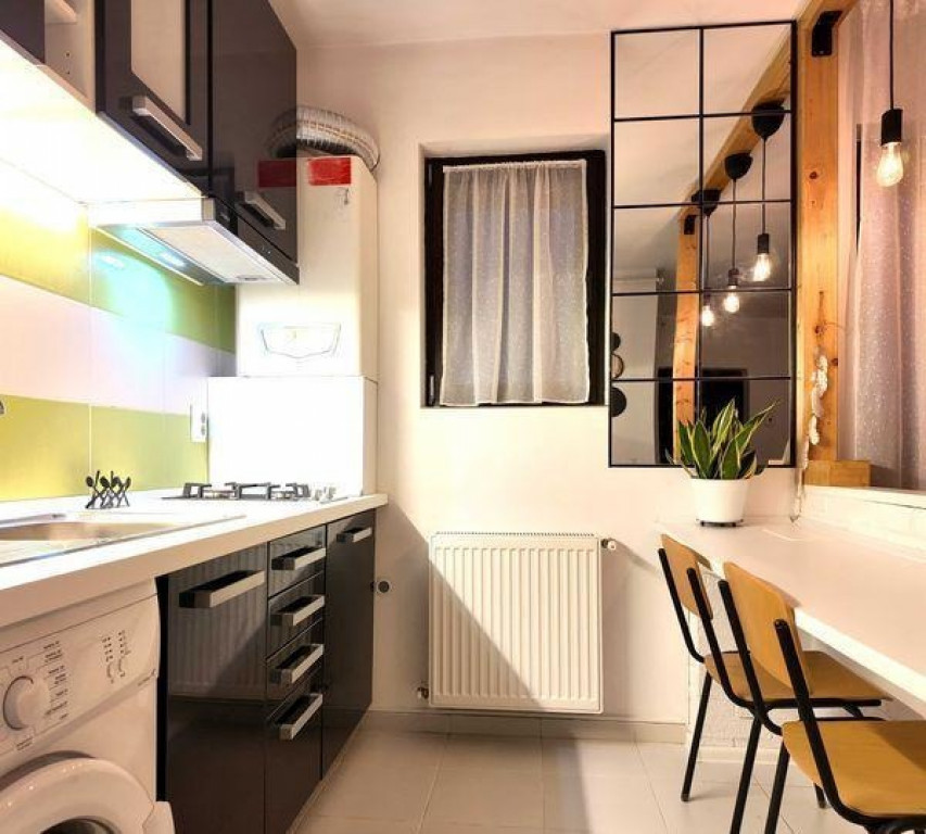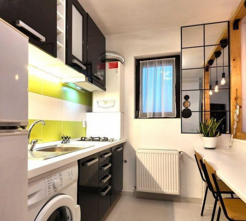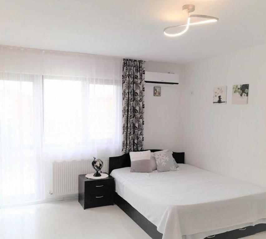 garsoniera luminoasa si spatioasa langa metrou Dimitrie Leonida Garsoniera a fost recent igienizata si imbunatatita cu un nou design Pat doua persoane 160x200, sifonier dublu, pantofar, si multiple spatii de depozitare. Electrocasnice: TV, frigider, aragaz, cuptor microunde, hota, masina de spalat, aspirator, fier de calcat. Baie cu cada si bideu. Aer conditionat, centrala termica cu termostat de camera. Spatiul de odihna a fost antifonat. Prezinta un balcon generos cu spatiu de relaxare in aer liber, dotat cu: fotoliu exterior, spatiu de luat masa si jardiniere. Complex rezidential nou cu spatiu verde protejat cu bariere si monitorizare video si cu loc de parcare. In apropiere se afla sali de fitness, farmacii, supermarketuri, parc si restaurante Va astept pentru vizionare cu un telefon in prealabil. Contract de inchiriere inregistrat.