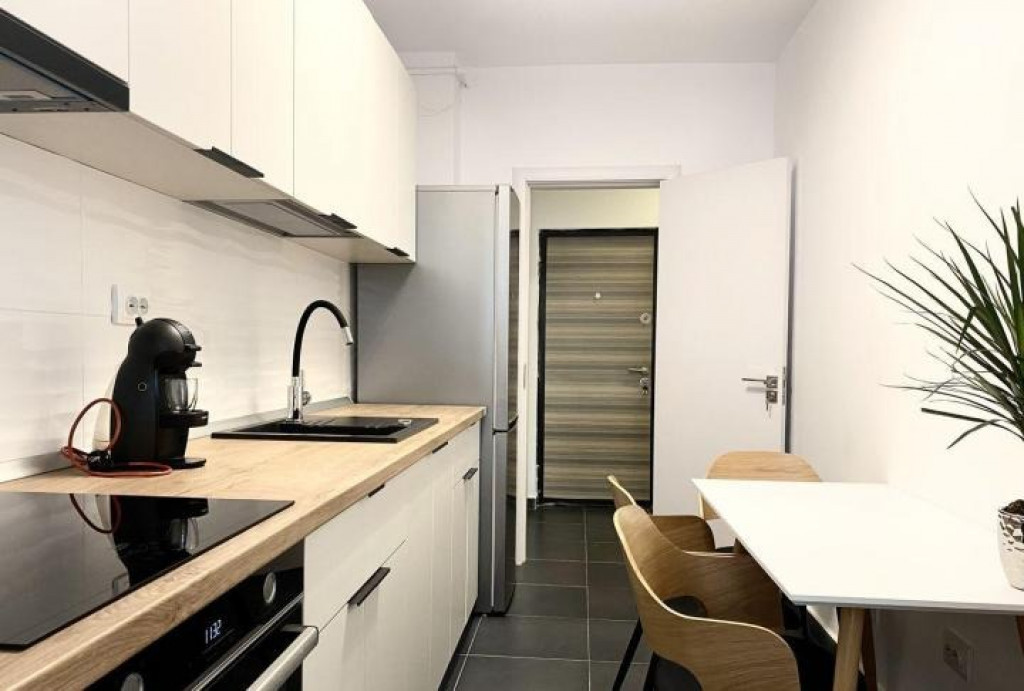studio amenajat de designer, in ansamblu rezidential supravegheat video 24/7. Situat la 10 min de metrou Dimitrie Leonida, in zona de interes a orasului Popesti-Leordeni, la 2 min de complexul La Strada Mall, supermarketuri, restaurante, terase, etc. Se inchiriaza cum se vede in poze, mobilat si utilat complet (bucatarie utilata, canapea+pat rabatabil pe perete, zona birou), dispune de toate facilitatile - centrala termica, aer conditionat wifi, masina de spalat, tv, internet. Balcon generos si vedere directa catre locul de parcare supravegheat video. Disponibil din data de 23.03.2026, se percepe o luna de chirie + o luna garantie Inregistrare contract ANAF
