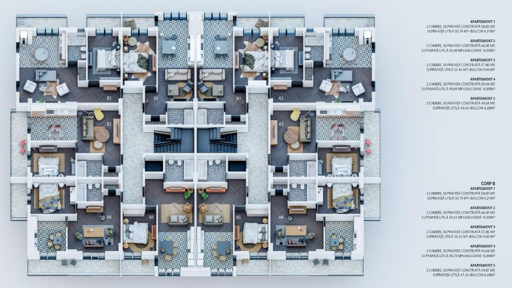 Direct Dezvoltator Apartamente 2 camere la "cheie" finisaje premium langa Kaufland ,Strada Stadionului cu Craitei . Zona foarte bine dezvoltata si linistita ce confera acces facil catre toate punctele de interes ( supermarketuri,farmacii,piata,scoala ,gradinita ,transport in comun ) Preturi de la 65.000 eur +tva Bloc Finalizat in proportie de 80% ( se lucreaza la finisaje ) racordat la toate utilitatile ( apa ,curent ,gaz ) Imobilul este P+7 cu doua lifturi corp A si B ,predare finala finala August 2025 Apartament tip 1 corp A - 2 camere camere open space 58.85 mp construit ,util total 55 mp ( balcon 4.21 mp ) Apartament tip 2 corp A - 2 camere open space 66 mp construit ,util total 67 mp ( balcoane 10.95 mp ) Apartament tip 3 corp A - 2 camere 57.80 mp construit ,util total 60 mp ( balcon 9.40 mp ) Apartament tip 4 corp A - 2 camere 59.04 mp ,util total 67 mp (balcoane 16.89 mp ) Apartament tip 5 corp A - 2 camere 54.87 mp util total 54 mp ( balcon 4.28 mp ) Predarea Apartamentelor se face la "cheie" cu finisaje de premium ce cuprinde: -gresie,faianta -Parchet -Usi interioare -grupuri sanitare ,centrala pe gaz -lavabil aplicat . -usa acces apartament antiefractie -termopane Veka -incalzire in pardoseala in tot blocu -scari placate cu travertin Imobilul este executat cu profesionalism si materiale de buna calitate.,respectandu-se absolut toate etapele in conformitate cu prevedarile legale si tehnice 100% Teren proprietate ,proiect sustinut din din resurse proprii