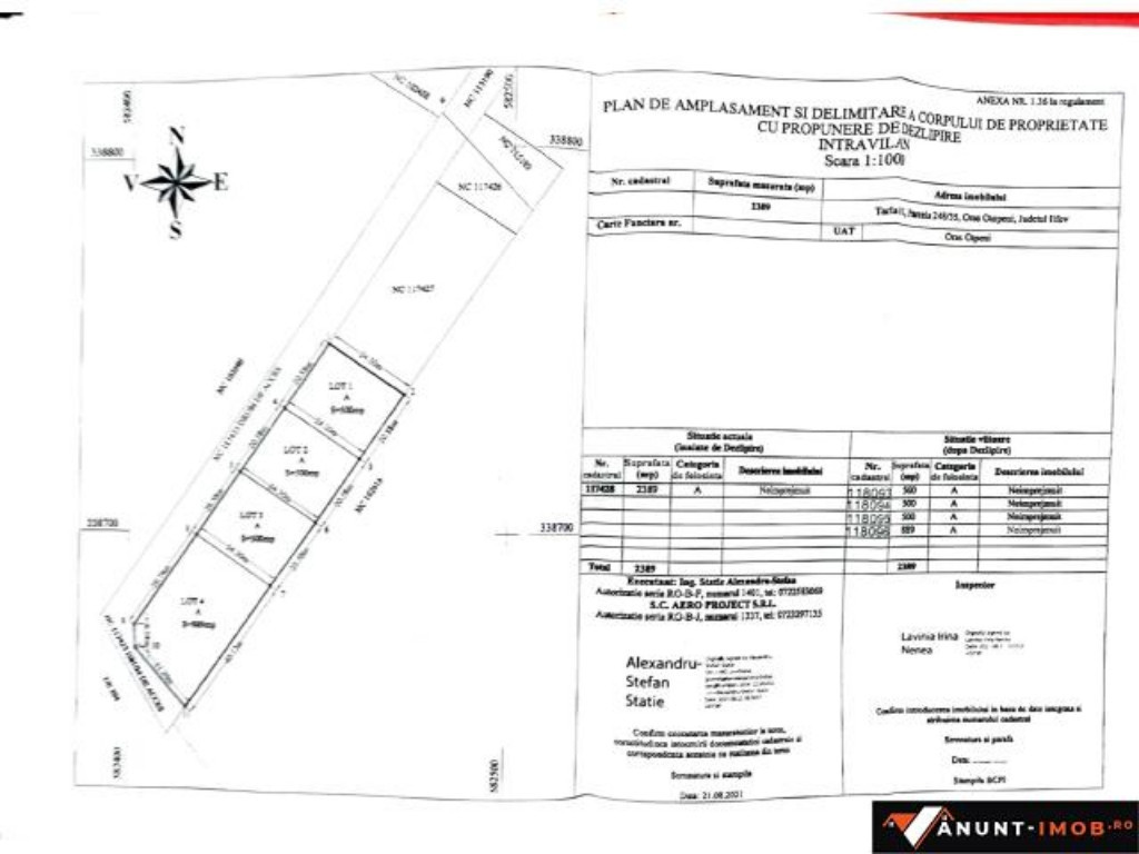 Direct proprietar vand parcela teren 700 Mp. intravilan construibil din Otopeni Odai Tarla 11 parcela 248 35, PUZ obtinut. Terenul este de 500 mp utili si 200 metrii drum de servitute.Toate actele cadastru, intabulare, sunt pregatite pentru vanzare.Pozitionat intr-o zona aflata in continua dezvoltare, foarte aproape de constructii existente si altele in curs de finalizare. Deschidere 26m la drum de servitute de 6 m cu trotuar de 1 m. Accesul drumului de servitute se va face prin Str. Constantin Brancoveanu . Regim de inaltime P+2E, POT 40% CUT 1,2 .Pret usor negociabil, in limita bunului simt.