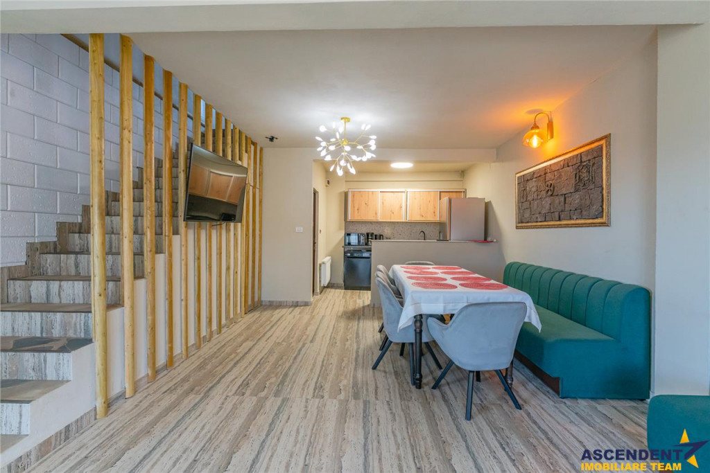 Comision cumparator. 2% TVA din valoarea de tranzactionare. ASCENDENT IMOBILIARE va propune spre vanzare, o Pensiune noua, la cheie, amplasata intr-un cadru natural deosebit, in imediata apropiere a Castelului Bran, in pitoreasca zona montana Bran ndash; Moieciu, judetul Brasov. Regiunea este recunoscuta pentru frumusetea peisajelor si pentru aerul curat de munte, oferind un decor autentic, incarcat de farmec si liniste, unde natura si confortul modern se imbina armonios. Film Prezentare: la identificare Terenul are o suprafata de 1.100 mp, cu o deschidere de 24 ml la drum asfaltat, iar constructia se ridica pe o amprenta de 136 mp, cu o suprafata construita de 272 mp. Imobilul este dotat cu toate utilitatile necesare pentru a asigura un trai confortabil, beneficiind de centrala termica pe gaz, termosemineu pe lemne, apa curenta, curent electric trifazic, conexiune la internet si fosa septica. Structura este dispusa pe parter si mansarda, fiind gandita astfel incat sa raspunda celor mai exigente cerinte de calitate si functionalitate. Compartimentarea interioara ofera spatii generoase si bine organizate, cuprinzand camere luminoase si moderne, fiecare cu baie proprie, apartamente cu living, dormitor si baie, o bucatarie utilata si un living de 50 mp cu bucatarie open space si baie de serviciu. Intreaga configuratie este conceputa pentru a imbina intimitatea cu spatiile comune, rezultand o locuinta primitoare, eleganta si practica. Curtea complet amenajata cu gazon si plante ornamentale adauga un plus de rafinament si relaxare, iar foisorul de 32 mp, dotat cu gratar, cuptor si plita, creeaza cadrul ideal pentru momente petrecute in aer liber. Proprietatea permite parcarea a 4 ndash; 5 autoturisme in curtea interioara, aspect care sporeste gradul de confort si accesibilitate. Pozitionarea intr-o zona linistita, cu priveliste panoramica de vis catre Muntii Piatra Craiului, transforma aceasta oferta intr-o oportunitate deosebita, atat pentru utilizare ca resedinta permanenta sau casa de vacanta, cat si pentru valorificare in scop turistic. Atmosfera unica a zonei Bran ndash; Moieciu, imbinata cu facilitatile moderne ale imobilului, recomanda aceasta proprietate drept una dintre cele mai atractive optiuni disponibile pe piata imobiliara montana. Certificat Energetic proprietate: Cladire certificata clasa A cu un consum anual specific de energie [KWh/msup2;an] 164.7 Indice de emisii echivalent CO2 [KgCO2/msup2;an] 7 Consum anual specific de energie din surse regenerabile [kWh/msup2;an] 0 Recomandam oferta celor ce isi doresc o casa de vacanta la munte dar si celor ce doresc sa dezvolte o afacere in regim de pensiune intr-una dintre cele mai cautate zone montane, cu un randament foarte bun.. Consilier specializat pe aleasa oferta: domnul Florin Tonu Telefon/ WhatsAp: 0721 218 273 Detalii, fotografii suplimentare si alte variante exclusive : www.ascendentimobiliare.ro