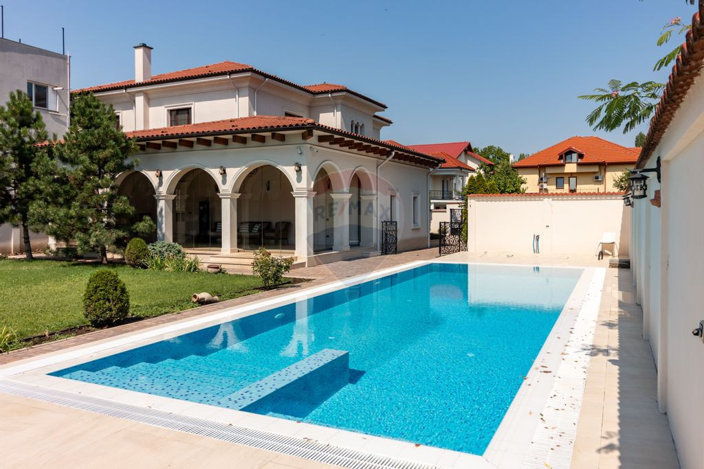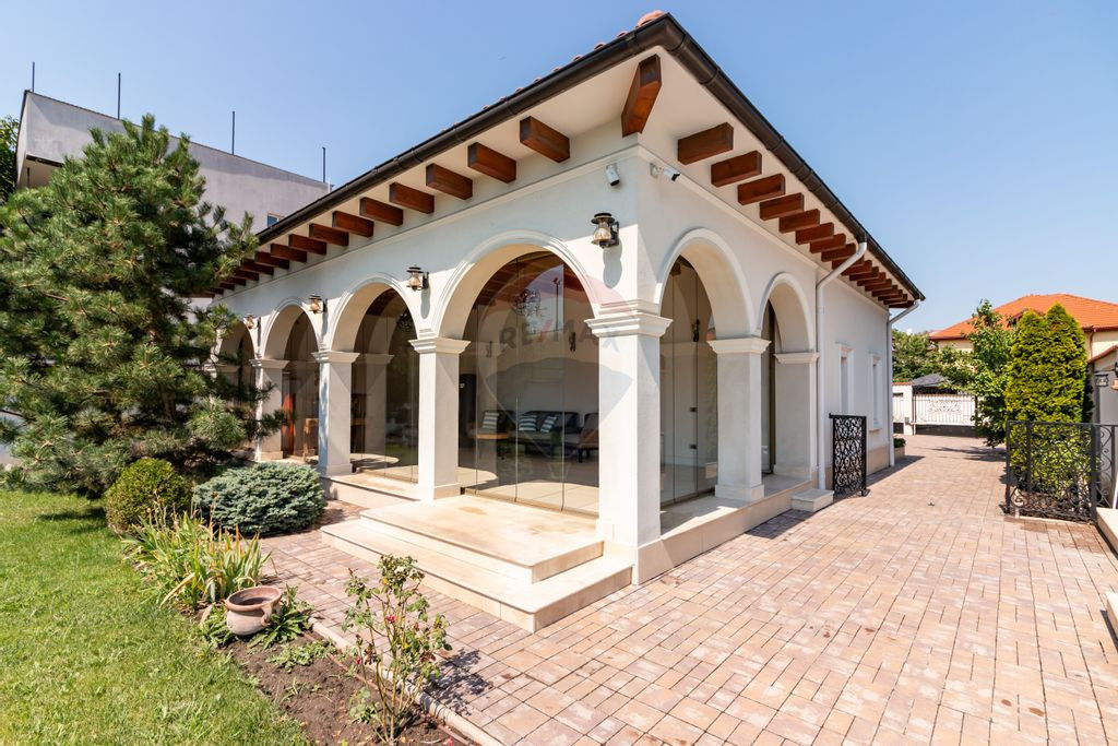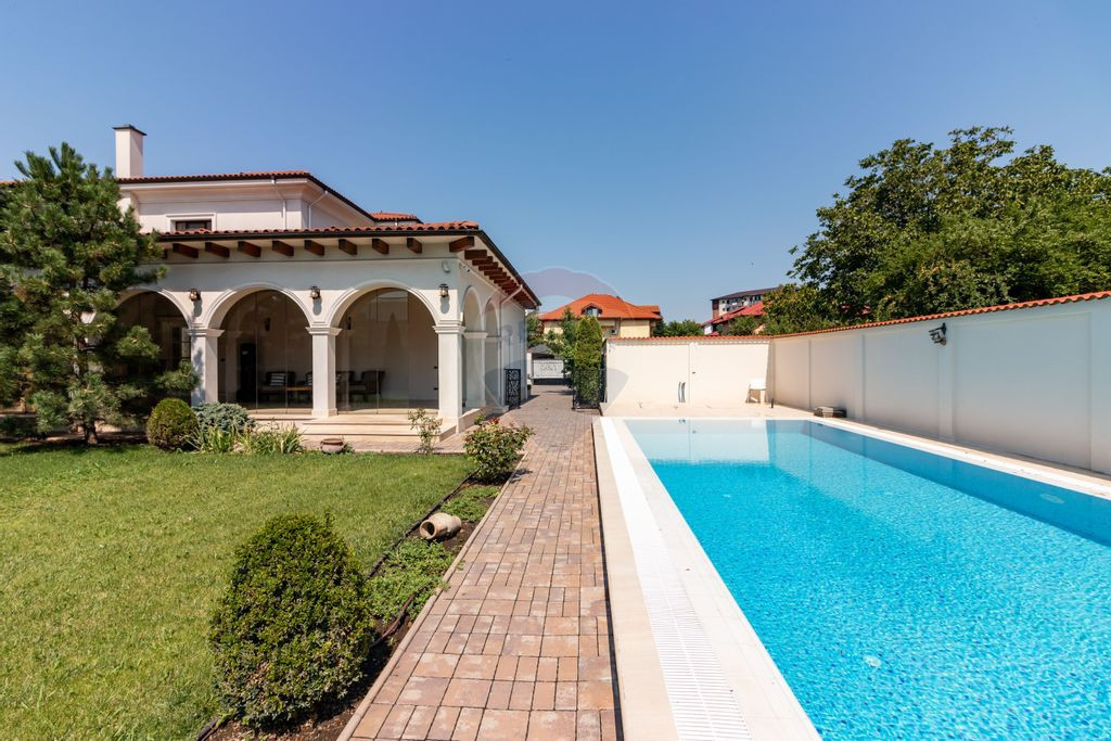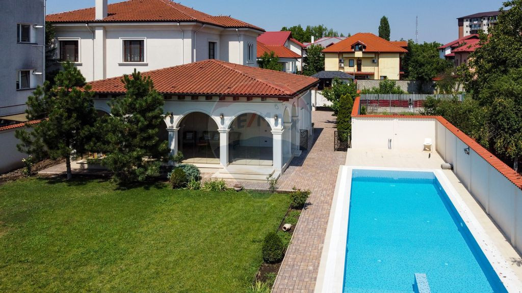 Bine ați venit la acest paradis ascuns, un domeniu exclusivist amplasat în inima sectorului 6 din București, ce se distinge prin eleganță și spațiu generos, fiind ideală pentru o familie numeroasă sau pentru cei care apreciază luxul și confortul. Cu un teren de 700 de metri pătrați, o amprenta de 328 mp și o suprafață utilă de 604 metri pătrați având 2 etaje, aceasta oferă un stil de viață exclusivist într-un cadru deosebit. Designul interior este de o rafinată eleganță, cu ferestre mari ce permit o abundență de lumină naturală și o amenajare interioară sofisticată, care include finisaje de calitate superioară. Elementele decorative precum vitraliile, plafoanele înalte, parchetul din lemn masiv și accentele clasice transformă această casă într-un adevărat refugiu de lux. Daca parterul este gandit pentru a reuni familia pe timp de zi într-un open-space spațios, cu un șemineu elegant ce adaugă o notă de căldură și rafinament în serile răcoroase, când vine vorba despre etaj, cele 4 dormitoare matrimoniale, fiecare echipat cu baie proprie și dressing, asigura intimitate și confort maxim pentru fiecare membru al familiei. Proprietatea dispune, de asemenea, de multiple zone de relaxare și divertisment, fiind perfectă atât pentru viața de zi cu zi, cât și pentru organizarea unor evenimente sau petreceri, unde spațiul generos pentru parcare in garaj sau in curte ajuta și mai mult. De altfel, piscina încălzită oferă posibilitatea de a te bucura de înot pe tot parcursul anului. Fiind amplasată într-o zonă liniștită și exclusivistă din sectorul 6, această proprietate îmbină perfect liniștea suburbană cu accesul facil la toate facilitățile urbane. Aceasta este o oportunitate rară de a achiziționa o casă de vis într-una dintre cele mai căutate zone din București, oferind nu doar o locuință, ci un stil de viață desăvârșit. Va aștept cu drag sa o explorați !