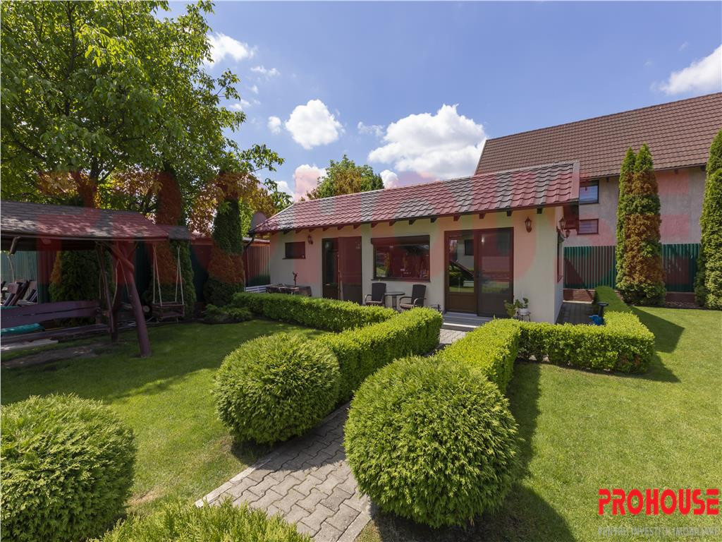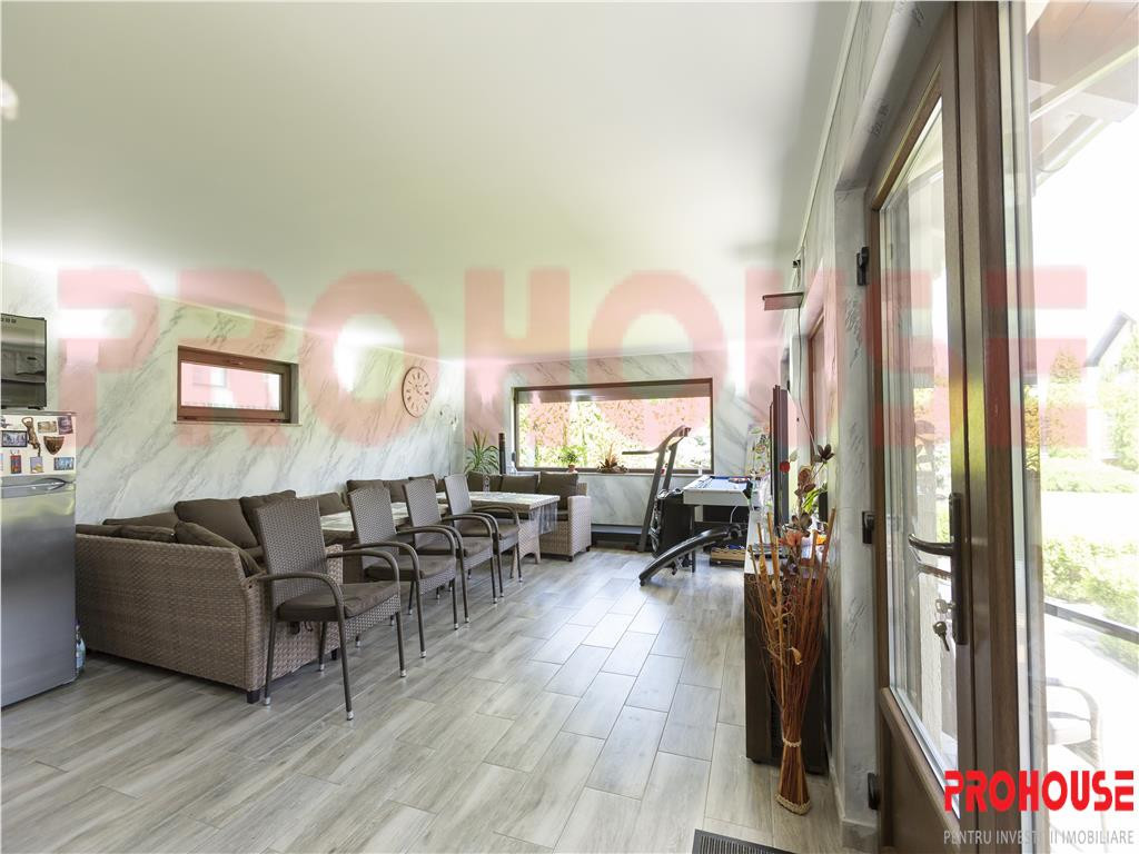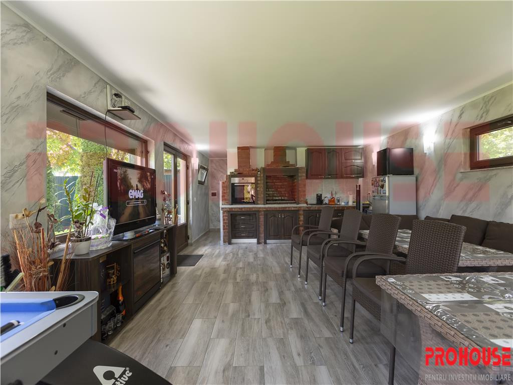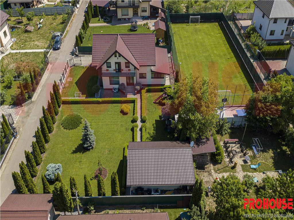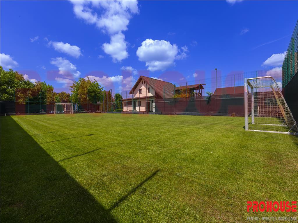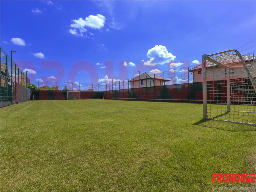 Proprietatea este formata dintr-o locuinta de tip vila S P M, si o zona de agrement formata dintr-o anexa in suprafata de 50mp, construita din caramida, si dotata cu bucatarie si toaleta, si un teren de fotbal amenajat la toate standardele (gazon cu irigare automata, gard inalt, nocturna).