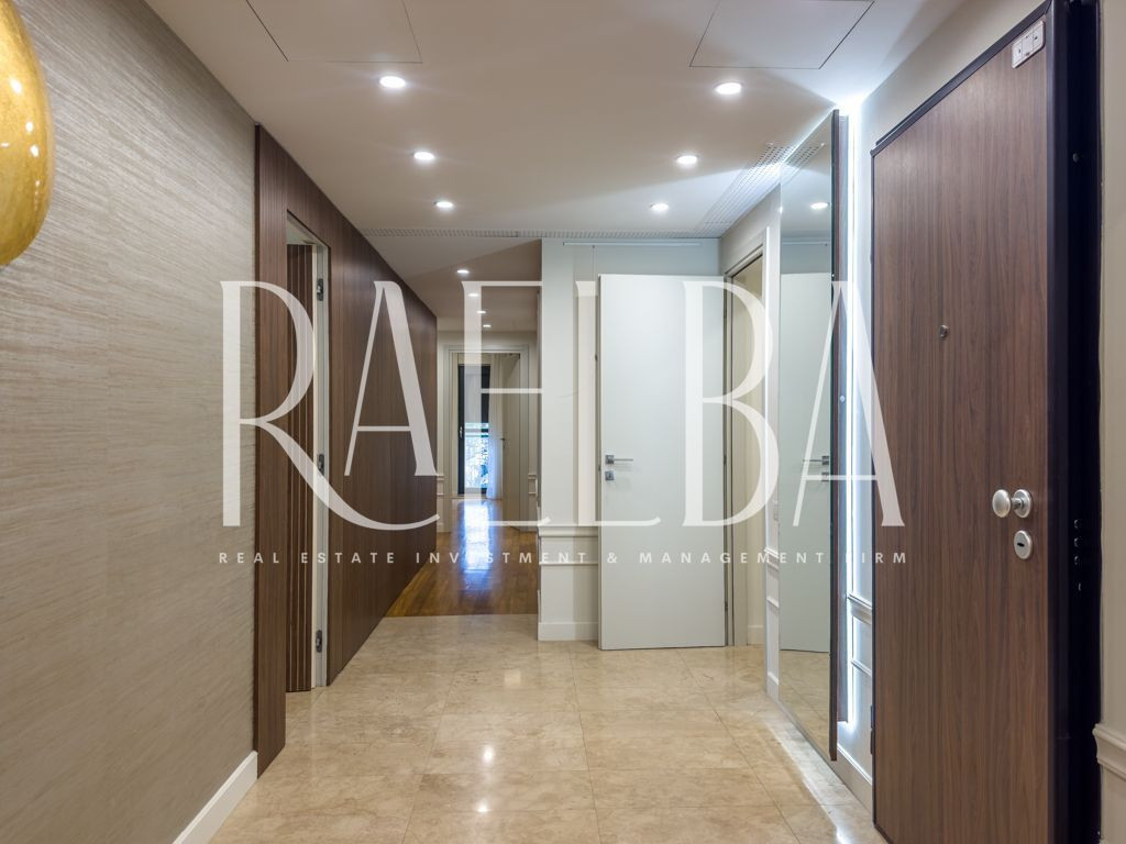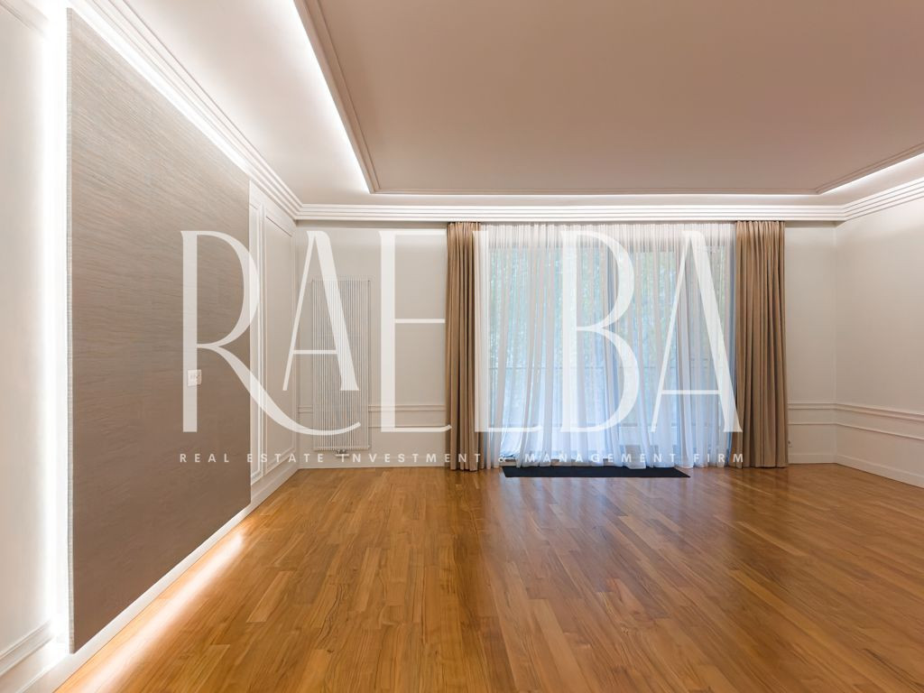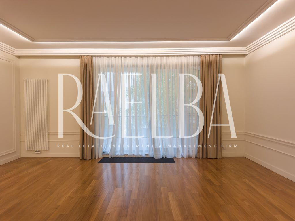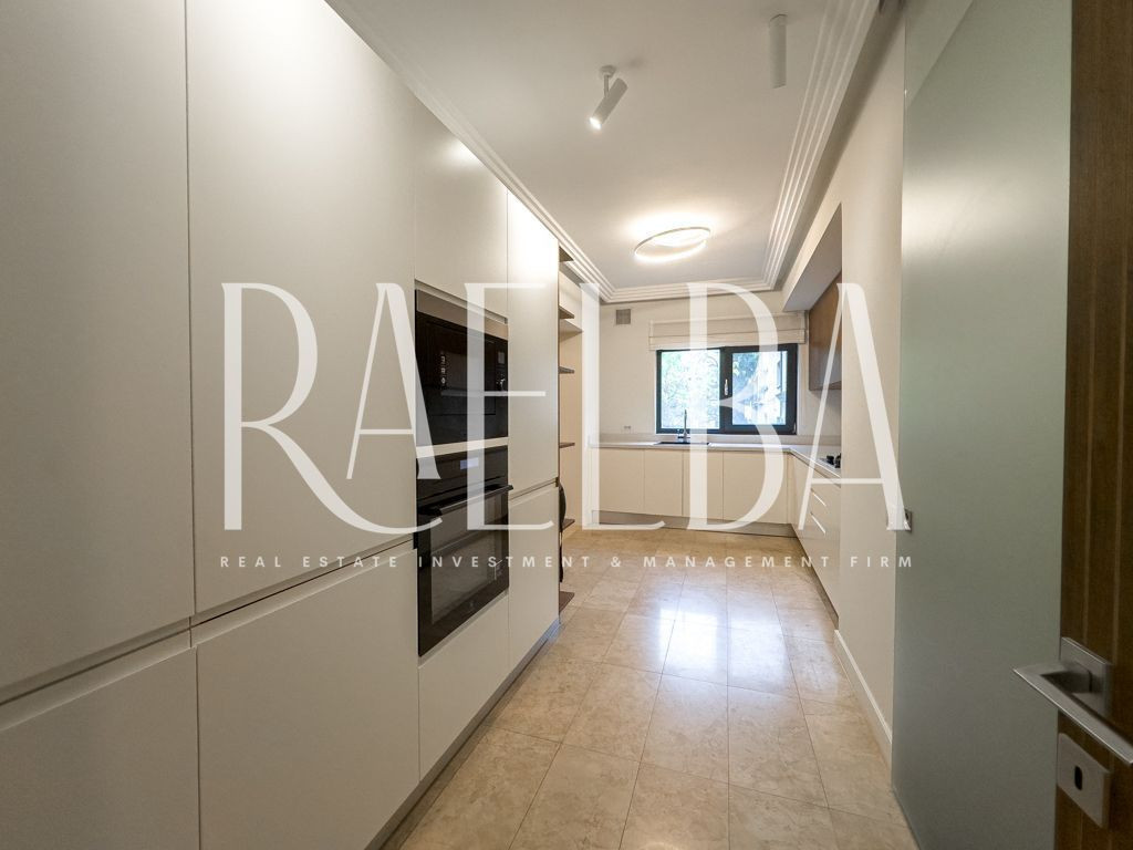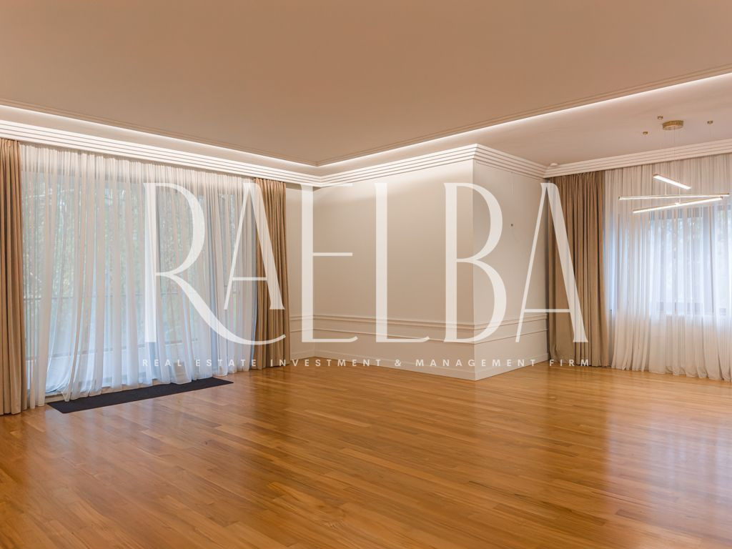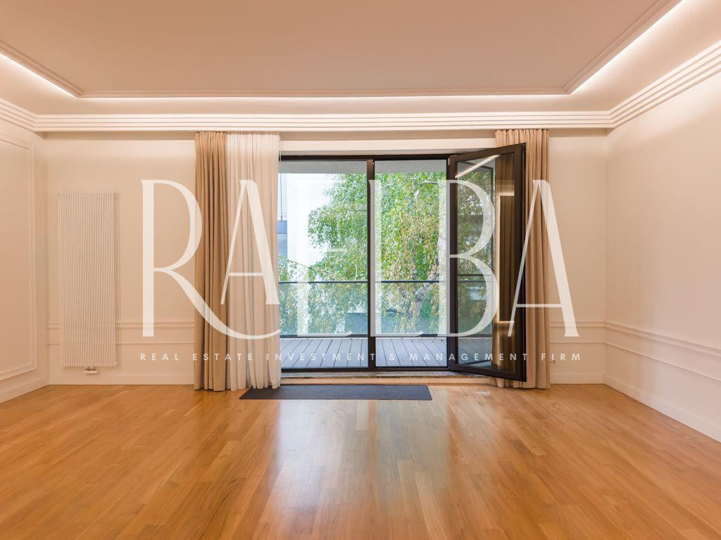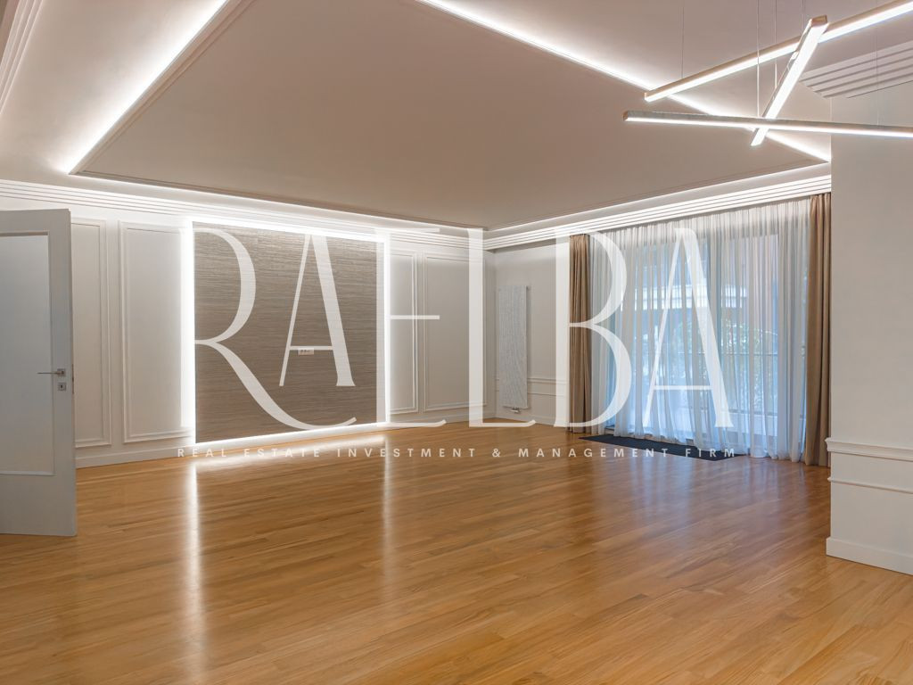Cartierul Capitale – Dorobanți rămâne una dintre cele mai stabile și exclusiviste zone rezidențiale din București. Un mix rar între vile interbelice, imobile low-rise și reședințe diplomatice, unde ritmul calm al străzilor, discreția și arhitectura joasă definesc un stil de viață greu de replicat în altă parte a orașului. Este un cartier ales de oameni care nu caută expunere, ci echilibru, siguranță și rafinament. În acest cadru se află ansamblul în care se găsește apartamentul propus spre închiriere – un complex modern, cu acces controlat, pază permanentă, sală de fitness dedicată rezidenților și spații exterioare atent amenajate, gândite pentru o comunitate restrânsă și selectă. Apartamentul se află la etajul 1 și se desfășoară pe o suprafață totală de 180 mp, din care fac parte două terase de 14 mp și 9 mp. Este un apartament luminos, cu o compartimentare excelent construită între zona de zi și zona de noapte. Livingul, cu o suprafață de 53 mp, integrează zona de dining și se deschide către terasa principală, parțial acoperită. Bucătăria este separată, complet mobilată și echipată, având un spațiu tehnic dedicat centralei. Zona de noapte cuprinde trei dormitoare, toate prevăzute cu dressing. Dormitorul matrimonial dispune de baie proprie cu cadă și cabină de duș, iar celelalte două dormitoare sunt deservite de o baie completă situată pe hol. Dormitorul secundar orientat spre interior are acces direct la o terasă intimă de 9 mp, ideală pentru relaxare. Apartamentul include și un grup sanitar pentru oaspeți, precum și un hol de intrare generos, cu spații suplimentare de depozitare. Finisajele sunt premium: parchet, marmură, ceramică, tapet decorativ, stucaturi, tâmplărie din aluminiu cu geam termopan, rulouri exterioare și plase anti-insecte. Confortul este completat de centrala termică proprie, calorifere noi și un sistem de climatizare centralizat cu ventiloconvectoare. Apartamentul se prezintă ca nou și se închiriază nemobilat. Proprietatea include un loc de parcare în garajul subteran. Un apartament potrivit pentru cei care caută spațiu, discreție și un standard real de calitate în zona Capitale – Dorobanți. O locuință rară într-un ansamblu modern, într-un cartier cu tradiție și stabilitate.