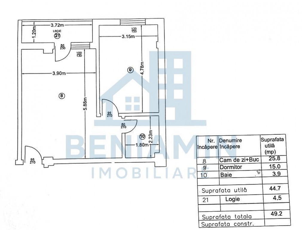 Suprafața utilă 44 m²
