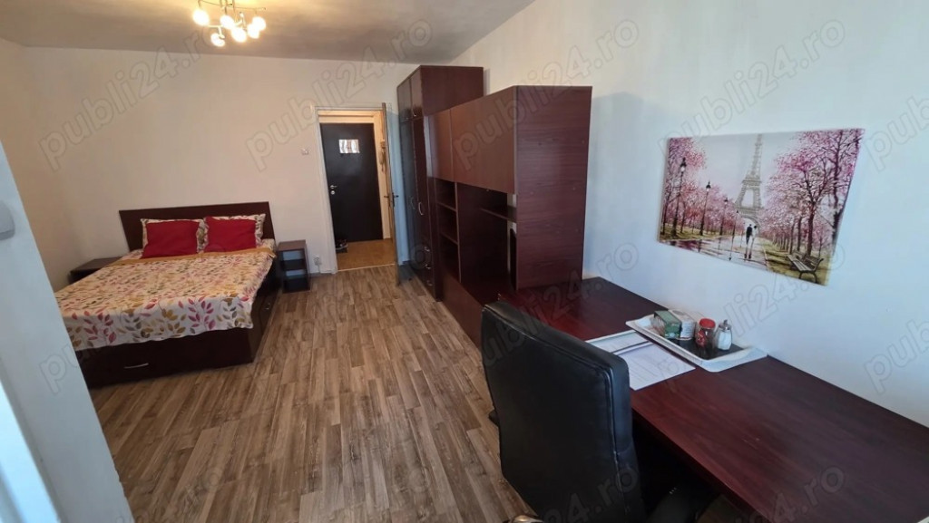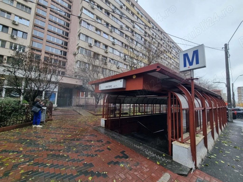 Garsoniera este mare (30 mp) si primitore, situată într-un imobil adiacent stației de metrou Dristor 2, cu acces direct din strada principală, la aproximativ 50 de metri de intrarea în stație, așa cum se poate observa și în imagini. Locuința se află la etajul 10 din 10 al unui bloc anvelopat, deservit de 8 lifturi, beneficiind de o vedere liniștită pe partea din spate, protejată astfel de praf și zgomot. Aceasta este încadrata de alte garsoniere și se află la distanță față de lift, astfel că nu sunt percepute zgomote deranjante în interiorul locuinței. Garsoniera este complet mobilată și utilată, având la dispoziție următoarele facilități: mașină de spălat rufe, aer condiționat, frigider, aragaz, televizor, internet, pat cu noptiere, dressing generos pe hol, precum și boiler pentru apă caldă instant în baie, oferind confort suplimentar si în cazul întreruperilor de furnizare a apei calde. Clădire cu interfon, pază 24 7 și supraveghere video. În apropiere se află magazine, sali de sport, mall-uri, parcuri și mijloace de transport (inclusiv autobuze de noapte). Cheltuieli lunare aproximative 200 lei întreținere, 100 lei energie electrică, 60 lei internet & TV. Nu se acceptă animale de companie. Chirie: 370 euro lună. Garanție: o luna. Apartamentul este disponibil imediat