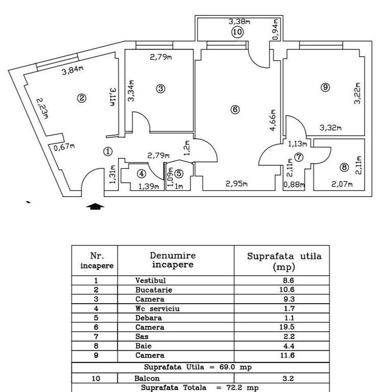 Suprafața utilă 72 m²