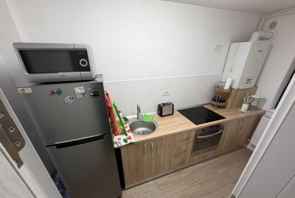 Dacă îți dorești un spațiu cochet, luminos și bine poziționat, această garsonieră de 30 mp din zona Dristor este alegerea ideală. Situată într-un bloc nou (construit în 2018), curat și bine întreținut, locuința oferă confort și siguranță, la doar 5 minute de mers pe jos de metrou. Garsoniera este eficient compartimentată și vine complet mobilată și utilată, perfectă pentru o persoană. Beneficiezi de toate facilitățile necesare pentru un stil de viață modern: - Centrală termică proprie - Aer condiționat - Bucătărie complet echipată (frigider, plită electrică, cuptor electric) - Baie cu cadă - Internet și utilități funcționale - Spații de depozitare bine gândite În plus, imobilul oferă un nivel ridicat de siguranță: acces securizat cu interfon, curte împrejmuită și sistem de supraveghere CCTV. Zona este excelent conectată, cu acces rapid la transport, magazine, restaurante și alte facilități urbane.