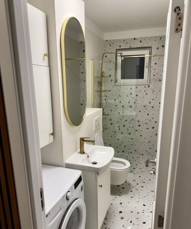 Garsonieră modernă de închiriat lângă metrou Dristor, bloc MIXT, anvelopat Este renovată complet: instalație electrică, instalația sanitară etc. Toate piesele de mobilier, sanitare, electrocasnice, sunt NOI. BAIE -Mașină de spălat rufe cu USCĂTOR incorporat A++ -Dulapuri pentru depozitare diverse cu balamale soft close -Gresie porțelanată Terazzo -Duș walk-in -Set wc incorporat Geberit Gold HOL -Dressing MDF vopsit cu balamale soft close pentru depozitare hol acces( încălțăminte, îmbrăcăminte vară/iarnă-lungi/scurte), ( electrocasnice menaj, masă călcat, etc.) -Raft perete suspendat stejar(masă de toaletă) + oglindă semilunară BUCĂTĂRIE -Frigider incorporabil, plită pe gaz, cuptor electric, hotă electrică, blat mobilă tip L, etc, mobilier MDF vopsit, cu balamale soft close, având multe spații împărțite diversificat, etc. LIVING -Dressing MDF vopsit pentru depozitare cu balamale soft close( sertare pentru accesorii, bijuterii, încălțăminte, îmbrăcăminte vară/iarnă-lungi/scurte, etc.) -Colțar extensibil cu sistemul simplu de transformare în pat, cu 2 lăzi de depozitare spațioase, cu suprafața de 320 cm x 175 cm. -Mobilier MDF vopsit suspendat, cu balamale soft close și push, TV samsung smart -AC 12.000 BTU inverter A++ -Masă cu 2 laterale extensibile MDF BALCON -Dispune de priză cu protecție și la alegere se poate achiziționa masuță cafea în funcție de preferință. Spațiile de depozitare( dressing hol+ living) însumând o suprafață de 10 m. Garsoniera dispune de parchet premium stejar cu grosime de 12 mm cu rezistență la apă 24 h Garsoniera se inchiriază unor persoane serioase(maxim 2), contract minim 12 luni Se percepe garanție 2 luni Nu se acceptă animale de companie Pentru mai multe detalii/poze îmi puteți scrie/suna.