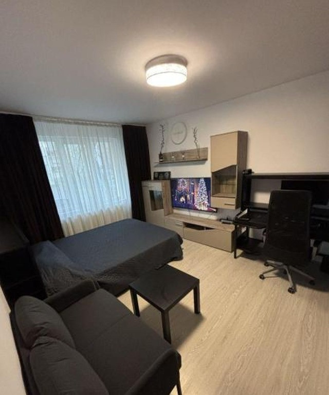 Garsonieră de închiriat, parter înalt, la doar 2 minute de mers pe jos de stațiile de metrou Dristor 1 și Dristor 2 (3 ieșiri). Garsoniera este luminoasă, cu vedere in spatele străzii, gradină cu copaci la geam, bine compartimentată și complet utilată, ideală pentru o persoană sau un cuplu. Dormitor / Living • Pat matrimonial 160x200, cu saltea foarte confortabilă și spații generoase de depozitare integrate • TV Smart Samsung de 139 cm, montat pe perete • Șifonier cu 3 uși (una complet oglindă), foarte încăpător • Canapea de 2 locuri și măsuță de cafea • Mobilier de living cu multiple spații de depozitare • Opțional: se poate lăsa și un birou, la cerere Bucătărie • Plită electrică pe inducție și cuptor electric • Mobilă de bucătărie spațioasă, cu multe zone de depozitare Baie • Cabină de duș, WC și chiuvetă • Mașină de spălat rufe Beko, achiziționată anul acesta Hol • Cuier, pantofar încăpător, oglindă • Frigider Beko de 2 m înălțime Nu se accepta animale de companie. Garanție 600€