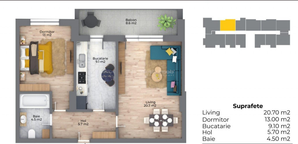 2 camere | 60 m² | Bucuresti-Ilfov / Bucuresti