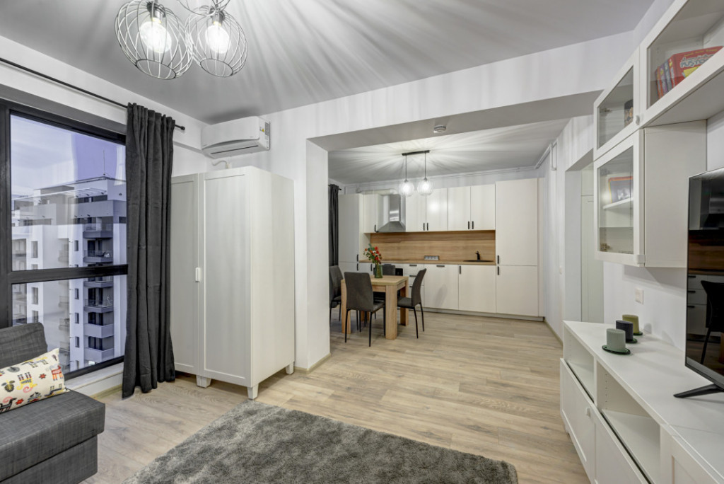 Comision 0 % pentru chirias ! Studio modern, spatios, mobilat si utilat, dotat cu Centrala termica, incalzire in pardoseala si 1 loc de parcare exterior ! Va prezint spre inchiriere un studio modern, situat in Drumul Taberei in Cartierul Brancusi pe Drumul Valea Doftanei la interesectia cu Bulevardul nou (Valea Larga), intr-un imobil nou, predat in folosinta in anul 2022. Accesul se poate face atat din Valea Oltului cat si din Bd. Timisoara prin Valea Larga ( intrare dinspre Valea Cascadelor- Bd. Timisoara). In zona sunt mijloace de transport in comun ( troleibuzul 93 are statie in imediata apropiere, tramvaiele din bd. Timisoara, Metrou Valea Ialomitei la 15-20 min de mers pe jos). Studio-ul este situat la etajul 8/10, are o compartimentare practica, decomandata cu multe de spatii de depozitare. Are o suprafata de 36 mp si beneficiaza de un balcon cu acces din zona bucatariei. Beneficiaza de finisaje moderne, este dotat cu incalzire prin pardoseala, centrala termica proprie, 1 aparat de aer conditionat iar ferestrele sunt panoramice atat in zona de living cat si cele din bucatarie. Spatiul este foarte luminos si eficient energetic, fiind incadrat in clasa energetica A. Baia este spatioasa, amenajata complet, dotata cu cada, obiecte sanitare si masina de spalat rufe Electrolux. In holul de la intrare spatiul a fost maximizat creandu-se spatii suplimentare pentru depozitare atat pentru haine cat si pentru incaltaminte. Bucataria este mobilata si echipata full, dotata cu plita electrica, cuptor electric, hota, masina de spalat vase si frigider incorporabil, toate marca Electrolux. Tot in bucatarie s-a creat un loc de luat masa pentru 4 persoane. Zona de zi este amenajata modern cu o canapea extensibila, mobilier de zi cu multe spatii de depozitare, TV smart si un dulap de haine. Spatiul este folosit la maxim, armonios amenajat si decorat in cel mai mic detaliu. Beneficiaza de 1 loc de parcare suprateran. Imobilul este dotat cu 2 lifturi hidraulice si acces securizat. In zona sunt parcuri, mijloace de transport in comun, acces facil catre statia de Metrou Valea Ialomitei, supermarket-uri ( Profi langa bloc), Policlinica Brancusi, terase, etc. Studio-ul se inchiriaza pe termen de minim 12 luni cu contract inregistrat ANAF. Comision 0 % pentru chirias ! Id intern: MA20274