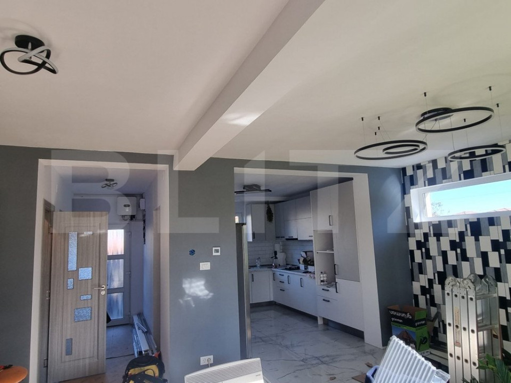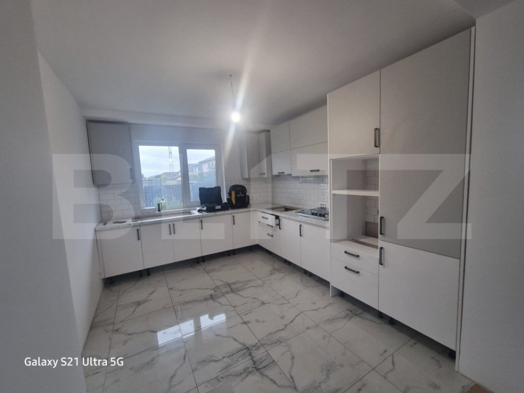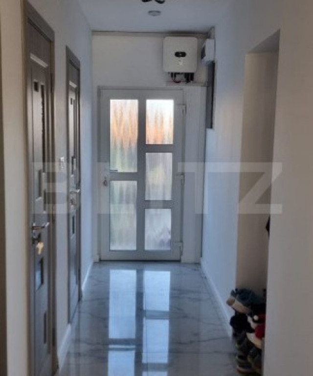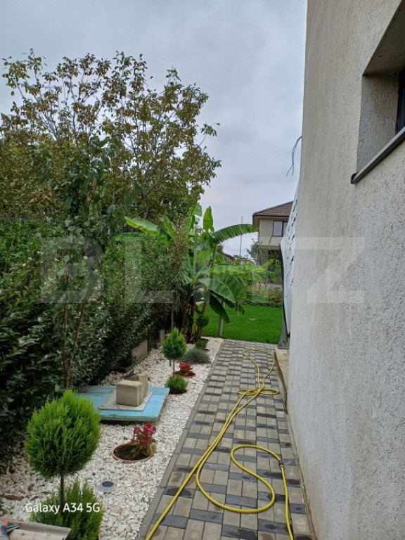 Blitz ofera spre vanzare n duplex superb de vânzare în Dumbrăvița, situat într-o zonă liniștită. Acest imobil oferă confort și eleganță într-o locație de vis, perfect pentru cei care apreciază o viață modernă și relaxantă. Terenul generos de 300 m² și frontul stradal de 10 ml completează această ofertă extraordinară. La parter, vei găsi un living spațios, o bucătărie generoasă mobilată, o baie cu duș și o cameră de depozitare, toate gândite pentru confortul tău. De asemenea, terasa mare este perfectă pentru momentele de relaxare în aer liber. Etajul este compartimentat astfel: un dormitor mare cu dressing, un dormitor cu balcon și o baie cu cadă, oferindu-ți tot confortul de care ai nevoie. Casa, construită în 2020 din cărămidă porotherm și izolată cu polistiren de 10 cm, dispune de tâmplărie Salamander cu geam tripan și site împotriva insectelor. Încălzirea la parter este prin pardoseală, cu un sistem Purmo și termostat propriu wifi, iar etajul este încălzit cu radiatoare și termostate pentru fiecare cameră, toate acestea controlate de o centrală Saunier Duval. Imobilul este racordat la gaz, curent monofazat, internet și televiziune prin fibră, are fosă și foraj, precum și panouri fotovoltaice de 6 kW (prosumator). Casa este protejată cu un sistem de alarmă Ajax și cablaj pentru camere de supraveghere la exterior. Curtea oferă alei pavate sau betonate, un garaj tip carport de 28 m² pe structură metalică și o poartă automată controlată de la distanță. Grădina este amenajată cu flori, pomi ornamentali și fructiferi, viță de vie și o zonă pentru legume, iar gazonul este dotat cu plasă anti-cârtiță și este irigat automat prin aspersoare și furtun de picurare, toate controlate de la distanță. Acest duplex este alegerea perfectă pentru cei care doresc să trăiască într-un loc modern, bine echipat și situat într-o zonă deosebit de liniștită. Nu rata ocazia de a transforma această casă minunată în acasă pentru tine și familia ta! Cod ofertă / ID BLITZ: P134995 Id intern: P134995