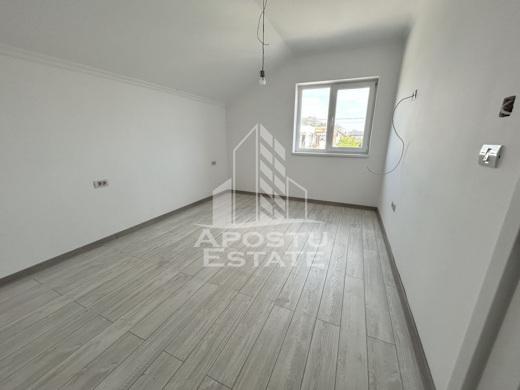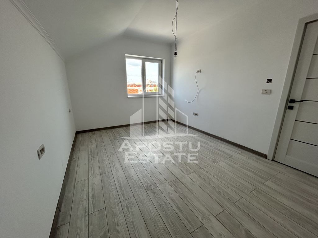 APOSTU ESTATE va propune spre vanzare duplex finisat la cheie, la Becicherecul Mic. Duplexul este structurat pe doua niveluri P+M. La parter regasim camera de zi, bucatarie, dinning, 2 locuri de depozitare, o baie si o terasa. La mansarda avem 3 dormitoare, o baie, un dressing, un hol si un balcon. Suprafata utila a casei este de 109 mp, iar terenul are 325 mp. Casa beneficiaza de urmatoarele utilitatii: -apa; - curent; -canalizare - fosa septica Casa este contruita din Porotherm, iar finisajele folosite sunt de calitete superioara. Accesul pana la casa se face exclusiv pe drum asfaltat. Va asteptam cu drag la o vizionare. CP2535020