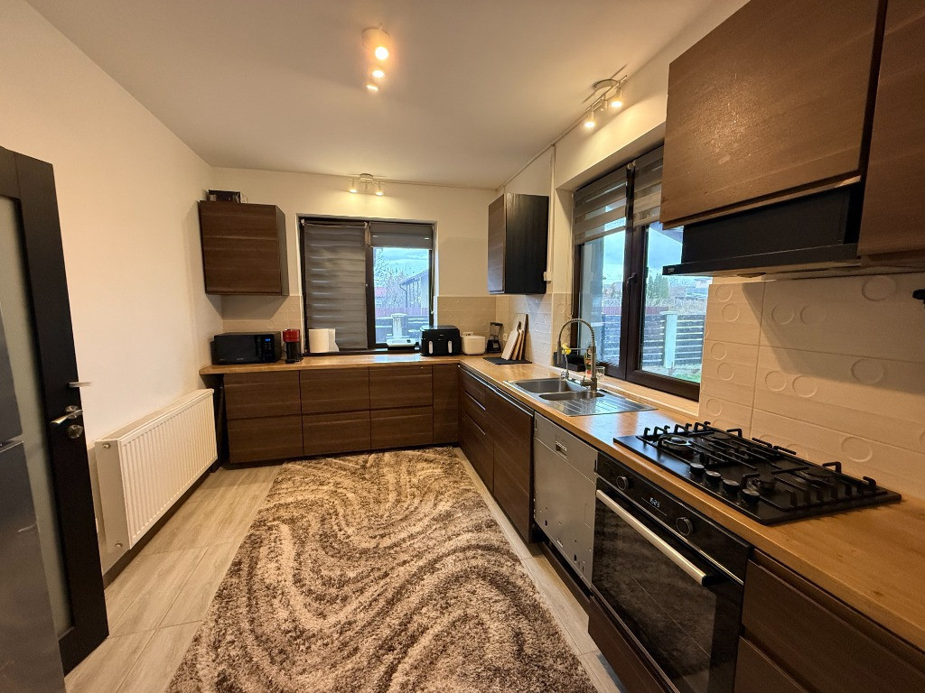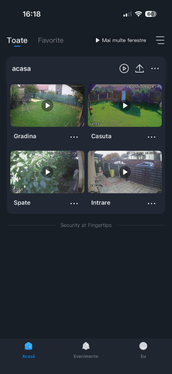 Videointerfon, camere video, irigatii subterane, zona inchisa partial cu gratar si canapele, prize exterioare ip68, iluminat curte + arhitectural, piscina supraterana