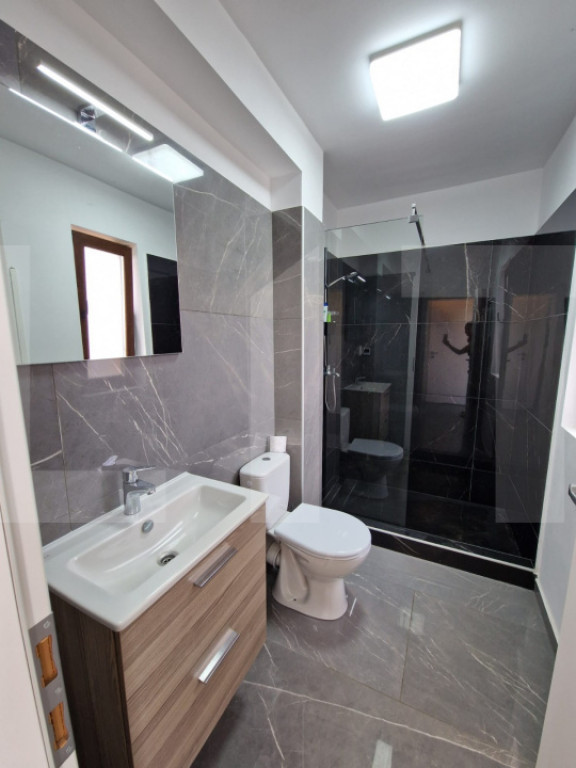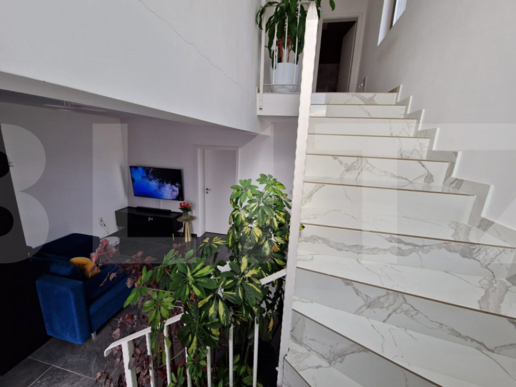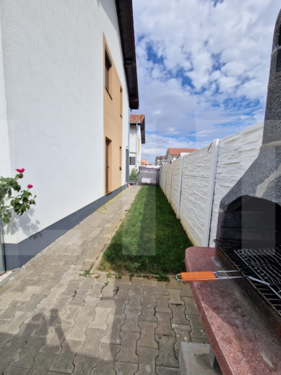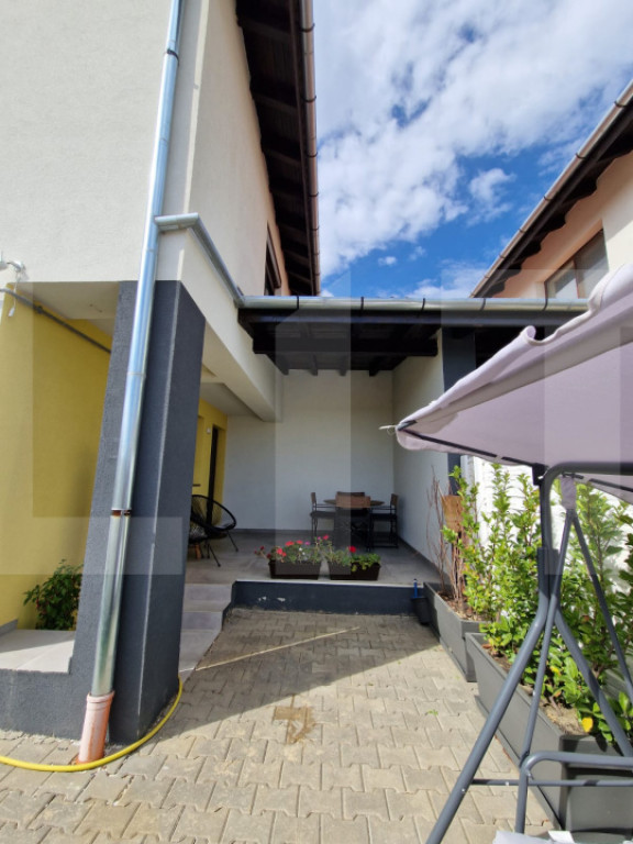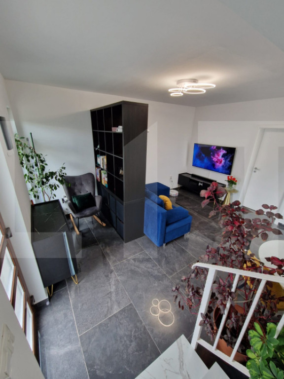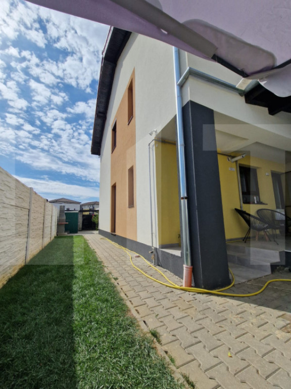 Blitz Imobiliare vă propune spre vânzare un duplex modern, construit în 2023, situat într-o zonă liniștită și în plină dezvoltare – Calea Urseni, strada Gălbenelelor, Giroc. Detalii generale: An construcție: 2023 Suprafață utilă: 76 mp Terasă acoperită: 15 mp (dotată cu masă și scaune) Suprafață teren: 150 mp Parcare: 3 locuri în fața casei Regim de înălțime: P + 1 + pod (placă de beton peste etaj) Compartimentare: Parter: Living Bucătărie separată Baie Debara Etaj: Hol 2 dormitoare (unul cu balcon) Baie Pod: Izolat cu polistiren 20 cm Dotări și facilități: Încălzire în pardoseală (centrală pe gaz, 6 termostate independente) Aer condiționat Rulouri + camere de supraveghere Terasă acoperită complet utilată Curte amenajată, grătar Se vinde complet mobilat și utilat Mobilier și electrocasnice incluse Living: canapea extensibilă, balansoare, masă + scaune, bibliotecă, comodă Bucătărie: mobilier la comandă, mașină de spălat vase, plită inducție, cuptor, hotă, frigider, masă + scaune, TV Baie parter: duș Debara: mașină de spălat rufe Dormitor cu balcon: TV, birou, dulap Dormitor matrimonial: pat 180x200, noptiere, dulap, comodă Baie etaj: cadă Utilități: Curent electric Gaz Apă de la rețea Canalizare Fibră optică – TV + internet Alte informații: Casa este locuită, dar se poate elibera imediat Se acceptă credit imobiliar În apropiere: Zone 2, Centura Timișoara, supermarketuri (Mega Image, Profi), farmacie, Continental Stația de autobuz la 400 m Pentru mai multe detalii sau programarea unei vizionări, nu ezitați să ne contactați! Cod ofertă / ID BLITZ: P158082 Id intern: P158082