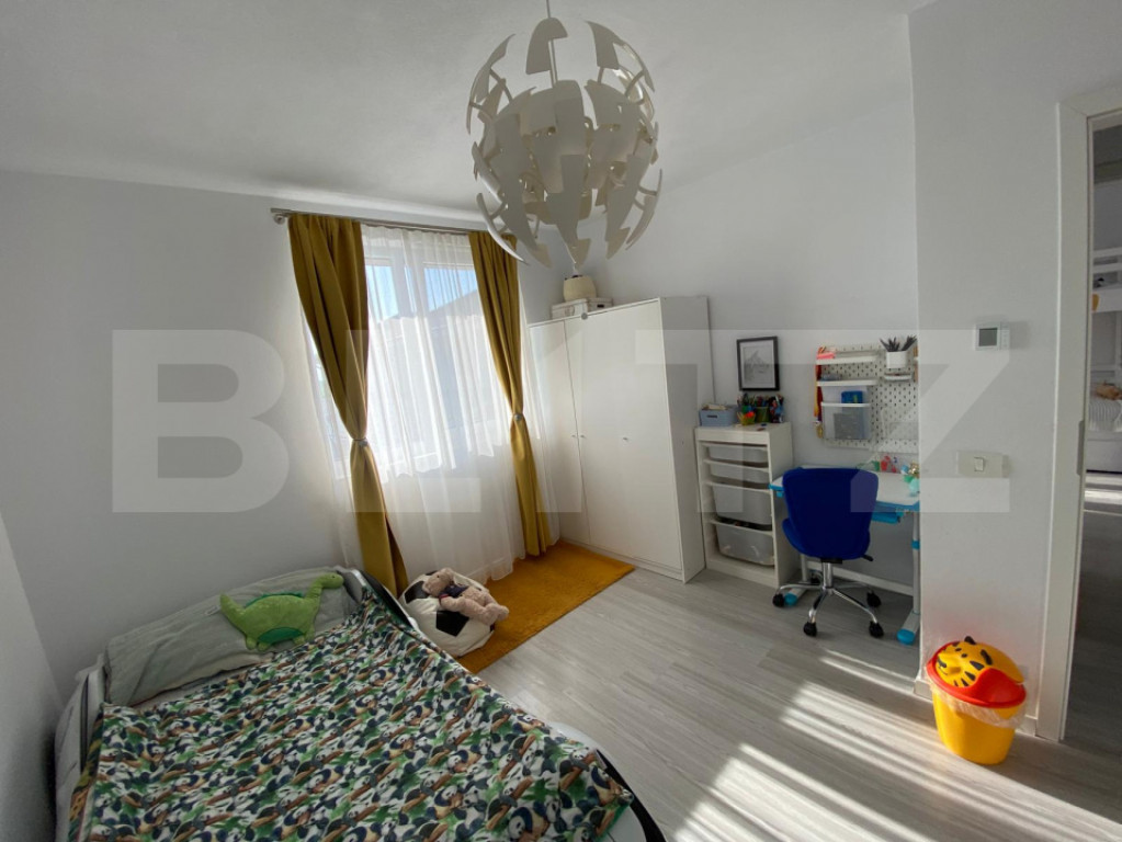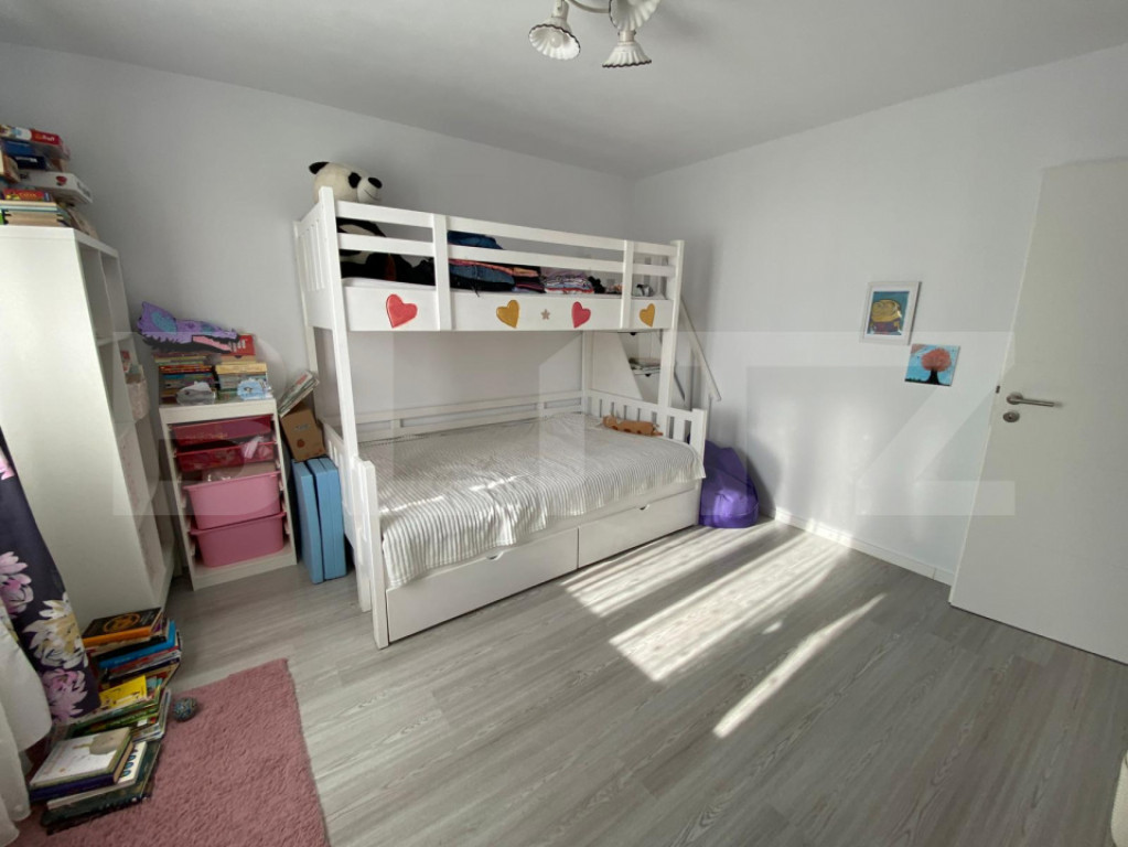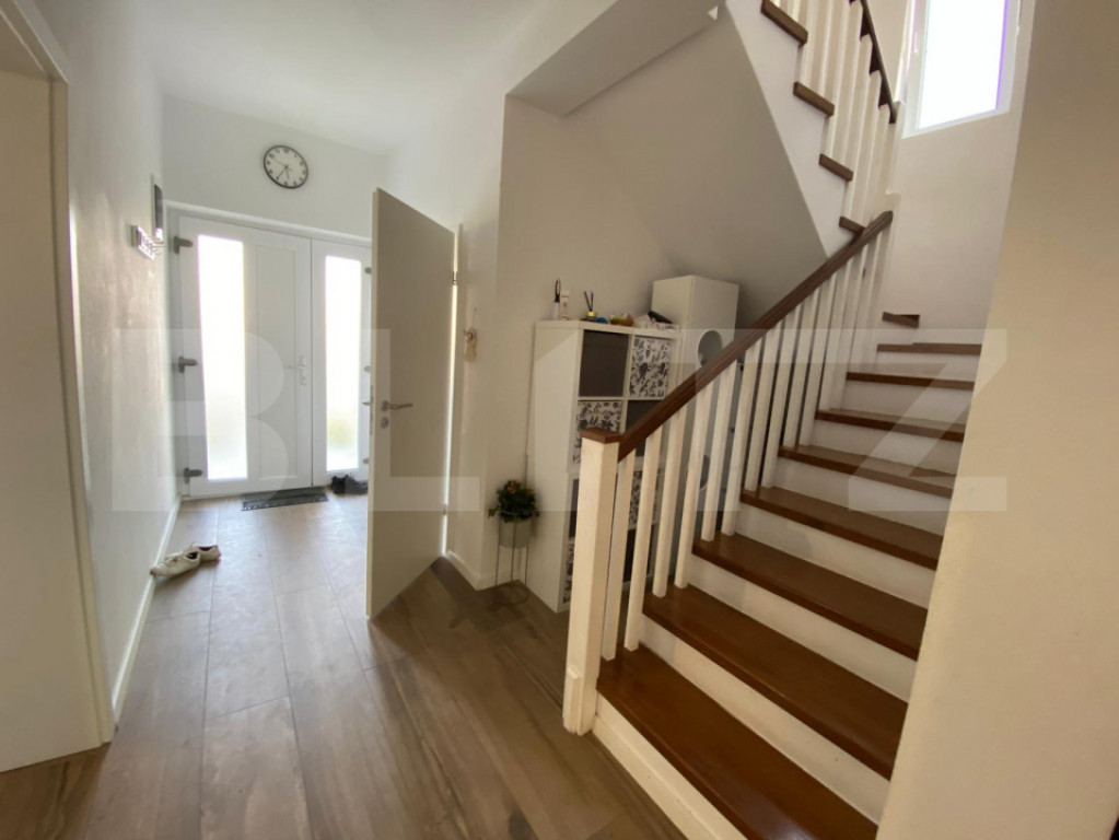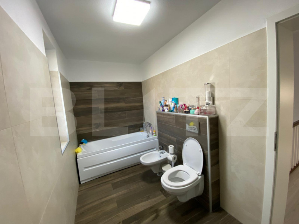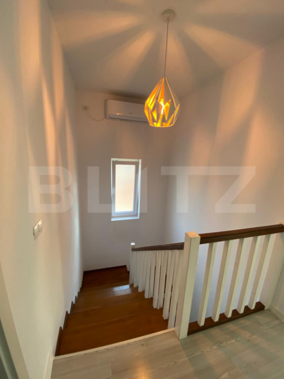 BLITZ vă propune spre vânzare un duplex despartit prin camera tehnica situat în Giroc, proiectat pentru eficiență, confort și intimitate, prin separare constructivă cu cameră tehnică. Imobilul are o suprafață utilă de 109 mp și teren aferent de 290 mp, fiind construit în anul 2022. Compartimentarea este practică: la parter regăsim bucătărie inchisa, living spatios, baie, cameră tehnică și terasă închisă și încălzită de 21 mp. Etajul este compus din 3 dormitoare(unul cu iesire pe balcon) și o baie. Podul dispune de placă de beton și spațiu de depozitare pe toată suprafața. Proprietatea este dotată cu toate utilitățile (curent, gaz, apă, canalizare), încălzire în pardoseală, 2 aparate de aer condiționat și foraj pentru grădină. Se vinde complet mobilată și utilată. Separarea prin cameră tehnică oferă un avantaj tehnic important: izolare fonică superioară față de duplexurile clasice, contribuind direct la un nivel ridicat de confort și intimitate. Imobilul este disponibil pentru mutare imediată. Cod ofertă / ID BLITZ: P169628 Id intern: P169628
