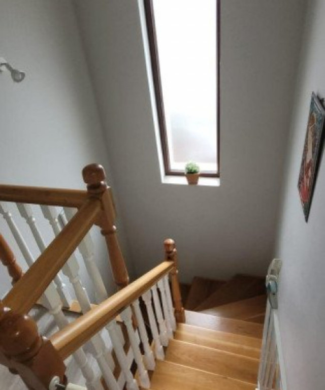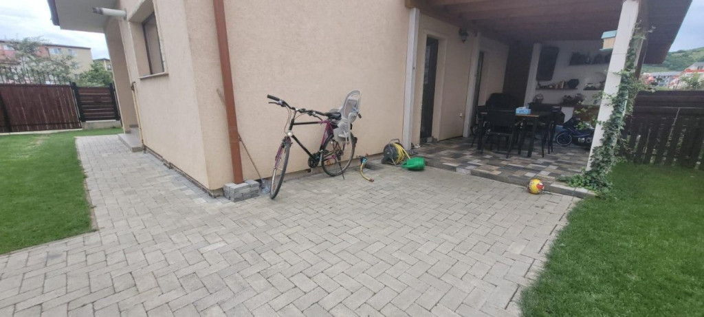 Blitz ofera spre vanzare duplex situat intr-un complex privat de case pozitionat in zona Terra, cu o suprafata utila de 115mp si gradina de aprox 230mp. Curtea amenajata cu iarba(gazon rulou cu instalatie de irigare),pomi, arbuști, zmeura, mure,o mica gradina cu zarvaturi, casuta depozitare, terasa de vara. Casa este dotata cu living+bucatarie, baie, hol + 2 iesiri pe terasa si gradina, debara la parter, iar la etaj avem hol, 2 dormitoare, baie matrimoniala dotata cu jacuzzi si un balcon + pod cu intrare din casa scarii cu inaltimea de aprox 1.6m. Bucătăria este dotata cu mobilier mdf, plita/cuptor ,hota, masina de spălat vase, frigider, microunde. Scările interioare din lemn masiv, parchet grosime 12 mm, gresie Marazzi. Încălzirea se poate face prin centrala gaz cât și printr-un semineu cu lemne. Accesul către Cluj-Napoca se poate face pe 1 din cele 3 variante: Centura de Nord, str Avram Iancu sau Centura de Sud. În imediata apropiere găsim cabinet medical, farmacie, carmangerie, brutărie, pizzerie, gradinita-cresa , având stația de autobus la 3 minute( transport spre la Cluj la fiecare 11 minute). In curte se pot parca lejer 2 masini, iar accesul se face de pe strada asfaltata. Cod ofertă / ID BLITZ: P2476 Id intern: P2476