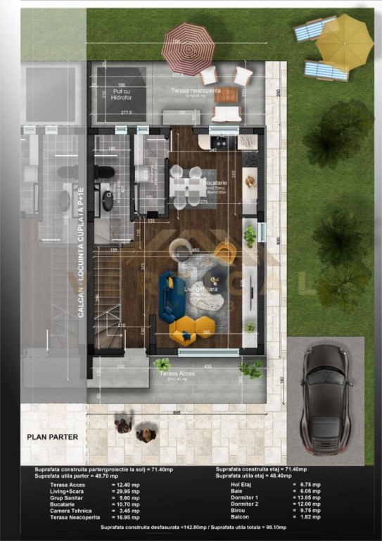 Duplex-ul este pentru oameni practici, joviali si mereu în miscare. Beneficiaza de curent, gaz si apa curenta. Exteriorul ne surprinde printr-o arhitectura moderna, masiva, atent construita. Curtea este amenajata impecabil si se poate folosi la maxim pentru lectura unei carti, zvapaiala unor copii sau gratarul cu prietenii pusi pe sotii. La interior, de cum pasim în cochetul imobil, putem observa compartimentarea excelenta – bucataria, baia ,living-ul si iesirea pe terasa; La etaj, gasim aceeasi compartimentare ce scoate în evidenta proprietatea: 3 dormitoare spatioase si o baie Va astept cu drag sa descoperim impreuna acest minunat concept: Gabriel Surdu - O784.O4O.221 Comison zero!