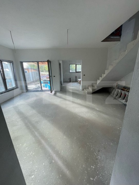 Cauti casa ideala pentru familia ta? Opreste-te putin, ai gasit-o! Blitz propune spre achizitie jumatate de duplex, pozitionat intr-o zona excelenta, aproape de toate zonele de interes din Giroc. Vrei sa te trezesti in fiecare dimineata cu un view fermecator care sa-ti dea un boost de energie pentru toata ziua? Aici l-ai gasit! Pozitionata in vatra veche a satului, si totusi intr-o zona linistita, aceasta locuinta poate deveni casa visurilor tale. Hai sa pasim la tine acasa! Compartimentarea este gandita excelent: *zona de zi- parterul, gazduind un living generos inundat de lumina naturala cu iesire in terasa care poate fi amenajata deschisa sau semideschisa, bucatarie separata unde alegerea de a o inchide sau nu iti apartine- iesire in terasa, baie spatioasa cu geam si dus, camera tehnica practic gandita ; * zona de dormit- etajul, cuprinzand 3 dormitoare mari si o baie cu vana si geam ; *zona de depozitare -podul, unde spatiul iti permite sa pui toate lucrurile de care nu te folosesti zi de zi ( gandeste-te doar la decoratiunile de craciun). Peretele comun este dublu cu polistiren de 10 cm la interior- sa nu-ti faci griji pentru ce pot auzi vecinii. Zidurile interioare sunt de caramida, tencuite mecanizat. Casa se preda cu sistem de incalzire in pardoseala parter și etaj (distribuitor separat parter/etaj ).Partea de finisaje interioare poate fi integral personalizata ( parchet, gresie, faianța) in limita unui buget alocat. Strada de acces este asfaltata asa ca nici la acest aspect nu trebuie sa iti faci griji ,masina ta este in siguranta (mai putin de 50 m fara asfalt) . Vrei sa-ti mai dau o veste buna? Locuinta se preda si cu amenajări exterioare: alei pavate si pamant pentru spatiul verde, gard -conform proiectului. Iti place ce ai aflat? Nu ma crede pe cuvand! Hai la o vizionare si urmarim impreuna cum prinde contur casa ta! Cealalta jumatate de duplex se afla la stadiul de rosu, are o suprafata de 124mp si poate fi achizitiona la cheie, pretul fiind de 210.000 euro. Compartimentarea acesteia este usor diferita(are o camera SAD). Doar această variantă mai este disponibila Cod ofertă / ID BLITZ: P6604 Id intern: P6604