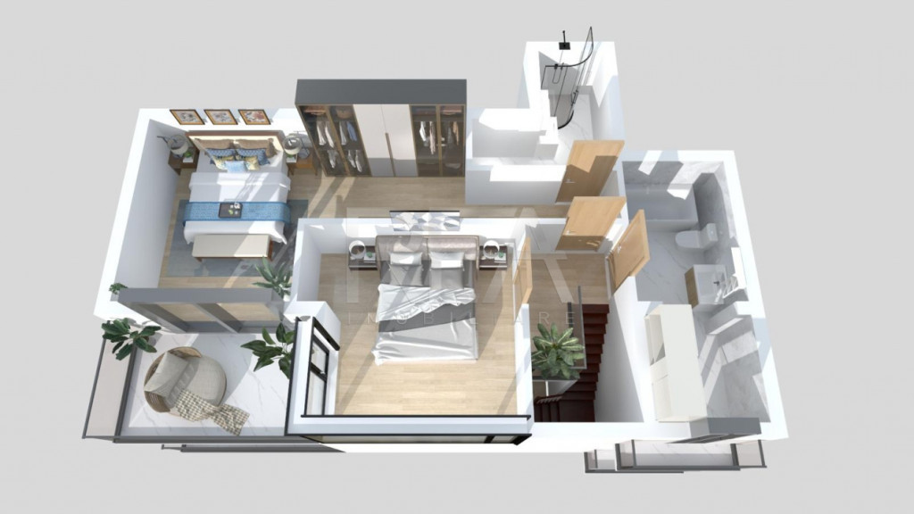 R.E.A. Imobiliare Duplex 4 camere, semidecomandat, orientat SUD - VEST, cu FINISAJE LA ALEGERE, la etajele 4 si 5 ale unui imobil format din Parter + 5 etaje + 2 etaje retrase, în zona Mosilor, la doar câțiva pași de strada Mihai Eminescu si Bulevardul Dacia, cu acces rapid atât către Obor, cât și către Universitate. Acces rapid la transport public: 3 minute pana la statiile STB, 8 minute pana la metrou Obor. Termen de finalizare 31 Mai 2026 - Suprafata totala de 130,30 mp: 113,50 mp utili + 8,4 mp balcon + 8,4 mp balcon. - Configuratie: Nivel inferior: dormitor, living, bucatarie, hol, baie, scara si balcon; Nivel superior: 2 dormitoare, 2 bai, hol, scara si balcon. - Incalzire prin pardoseala Tecce Germania, centrala proprie. - Parcare subterană tip Klaus independent 30.000 EUR+TVA / loc. Informatii suplimentare: - Parchet din lemn stratificat; - Ceramica perete / pardoseala in bai si parti comune, fabricatie Italia; - Obiectele sanitare gama moderna Rocca, accesorii HansGrohe; - Accesorii electrice Bticino prize / intrerupatoare, gama Premium; - Usi interior MDF pantografate, cu toc plan si pervaz drept, cu broasca magnetica, Pinum fabricatie Italia; - Usa intrare apartament metalica, blindata cu inchideri multipunct si balamale ascunse, Pinum fabricatie Italia; - Tamplarie PVC cu sticla termoizolanta tripan Salamander Blue Edition; - Inchiderile perimetrale si compartimentarile dintre apartamente din caramida Wienerberger de 36cm, iar compartimentarile interioare tot din caramida Wienerberger de 15cm; - Fatada ventilata: vata bazaltica 15cm, alucobond plus fibrociment; - Acces securizat in cladire, videointerfon si supaveghere video perimetrala si spatii comune. Pentru detalii și vizionări, contactați-ne specificând codul de identificare P9070 Id intern: P9070